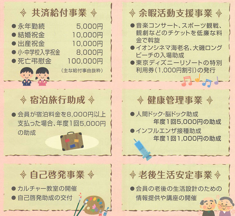最近だと加入者様とご家族が、レジャー・旅行・グルメ・ショッピングなどで使える『ベネフィット・ステーション』が追加されました。