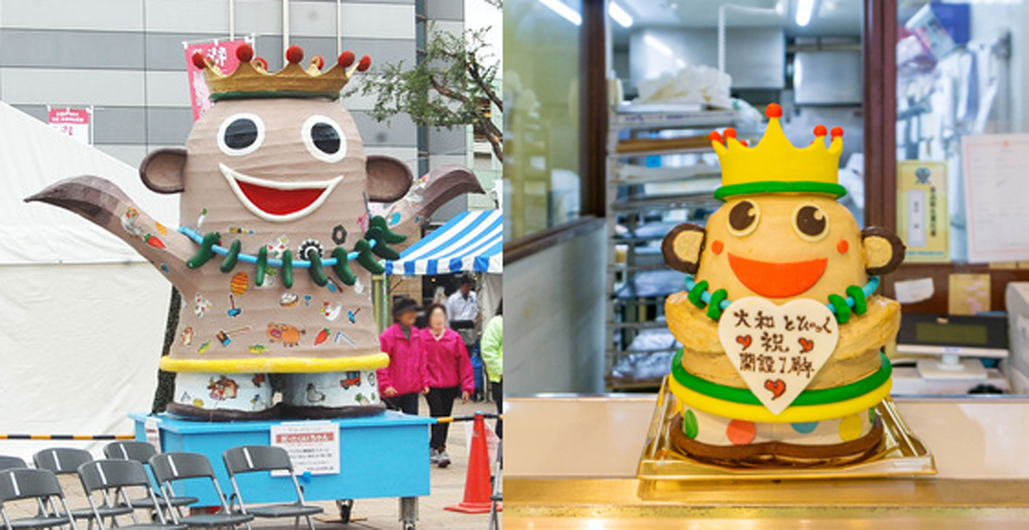 (産業フェア時の巨大モニュメント・やまとぴ1周年企画の時のたくみちゃんケーキ)