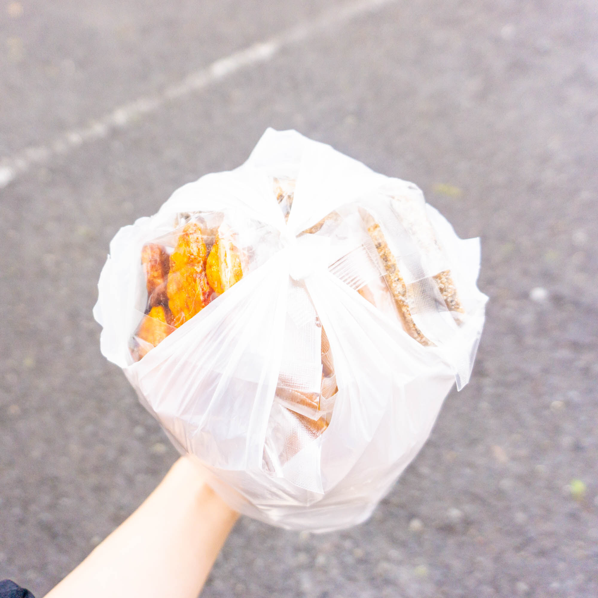 深見西の雷神堂で国産お煎餅が500円で詰め放題!この袋がいっぱいになった時、楽しさと充実感が満ち満ちる!!