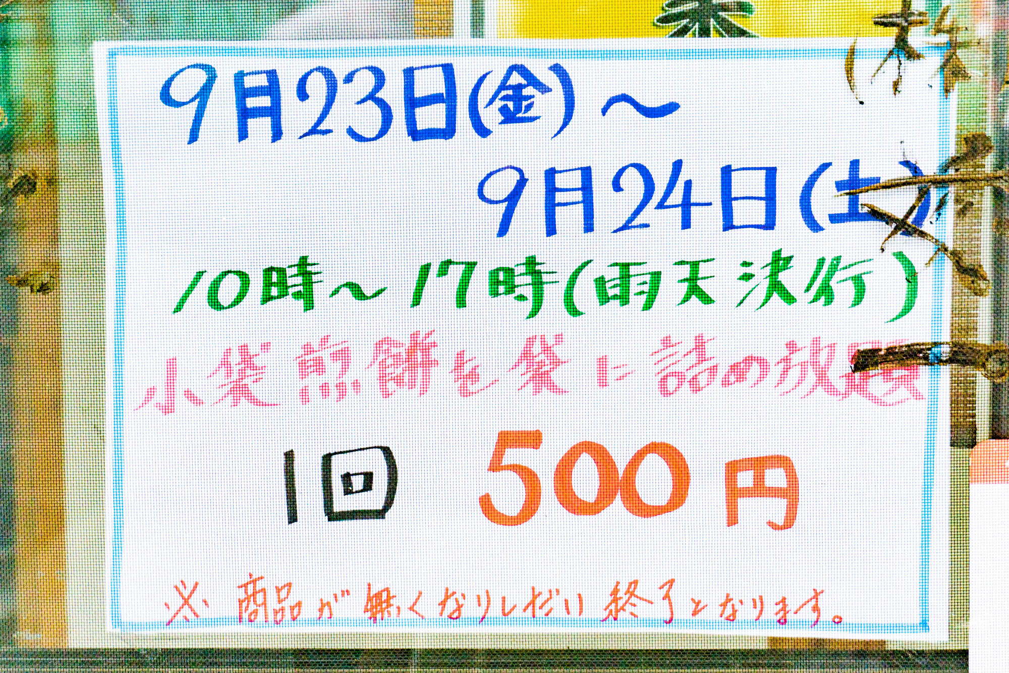 お店に入ってすぐある貼紙。