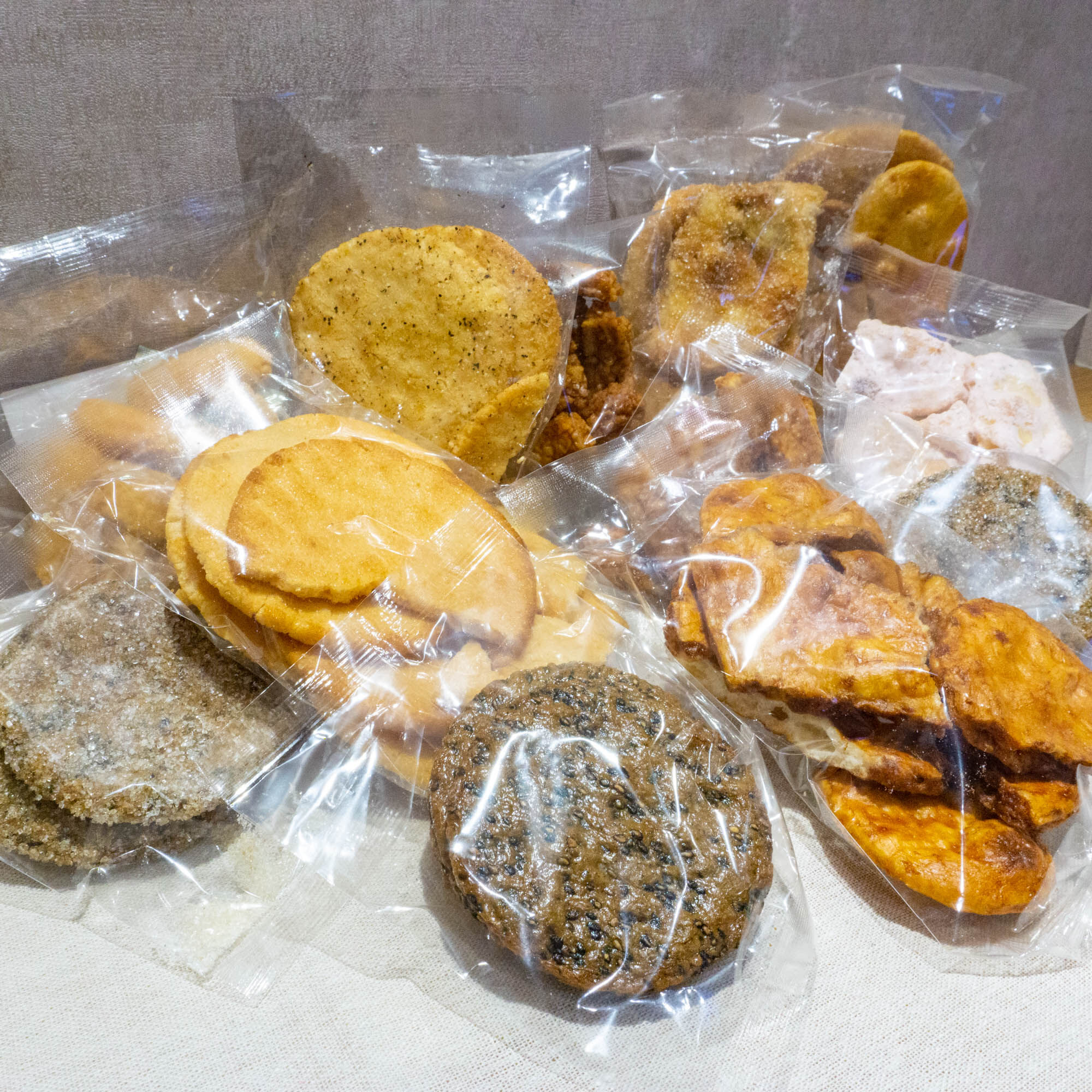 雷神堂のお煎餅って、通常1袋500円〜600円。それがなんと詰め放題で500円!というスペシャルイベント、これはワクワクせずにいられな〜い!!