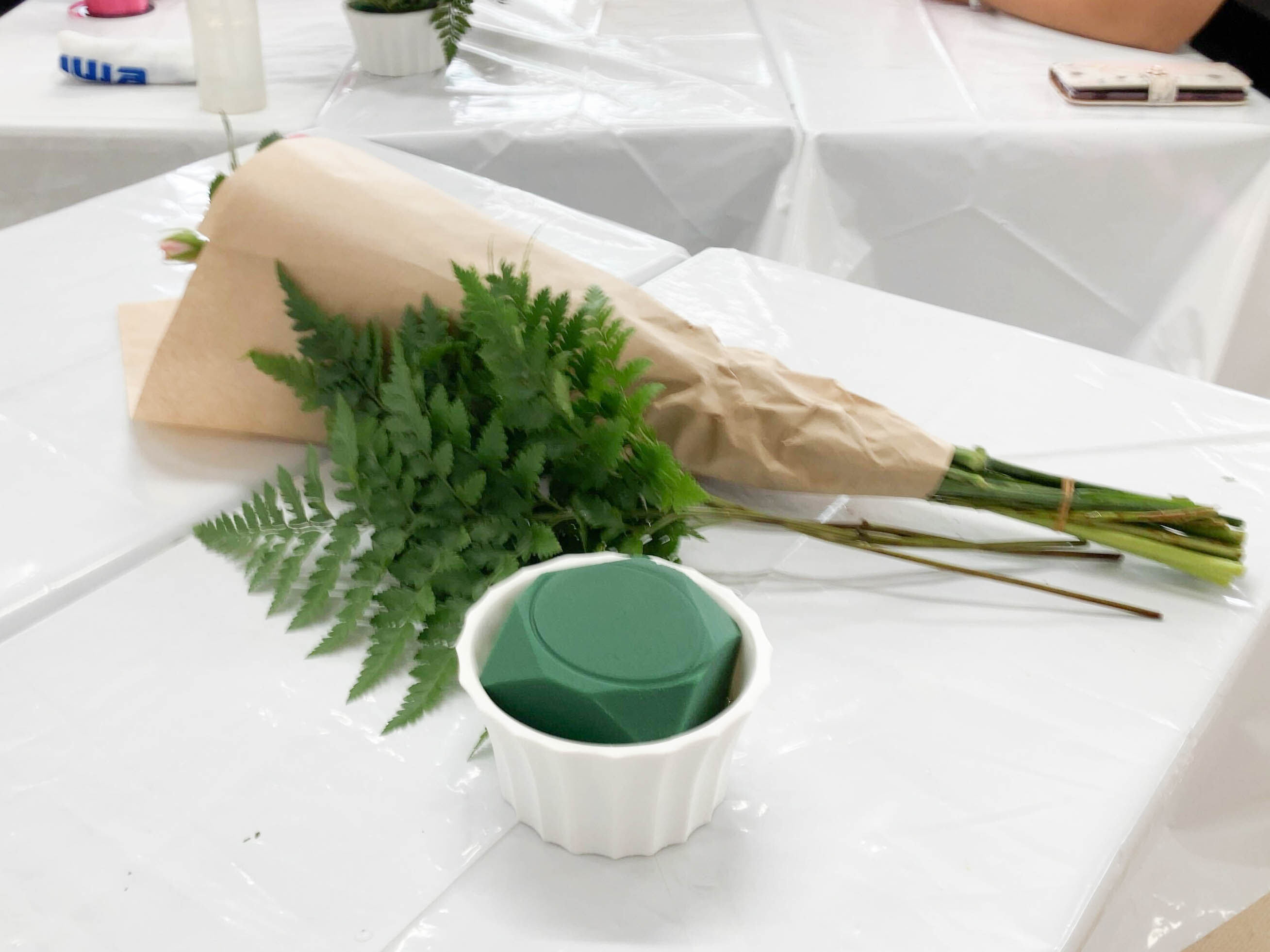 花束のなかから自分の好きな色合いのものを選んで、必要なものはすべてテーブルにセットしてくれました。
