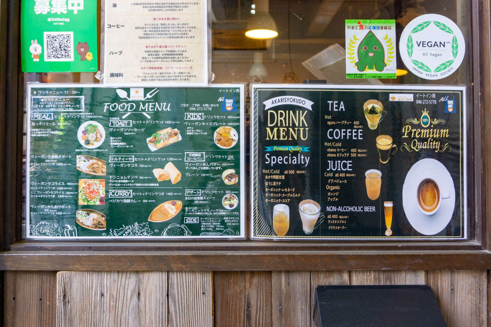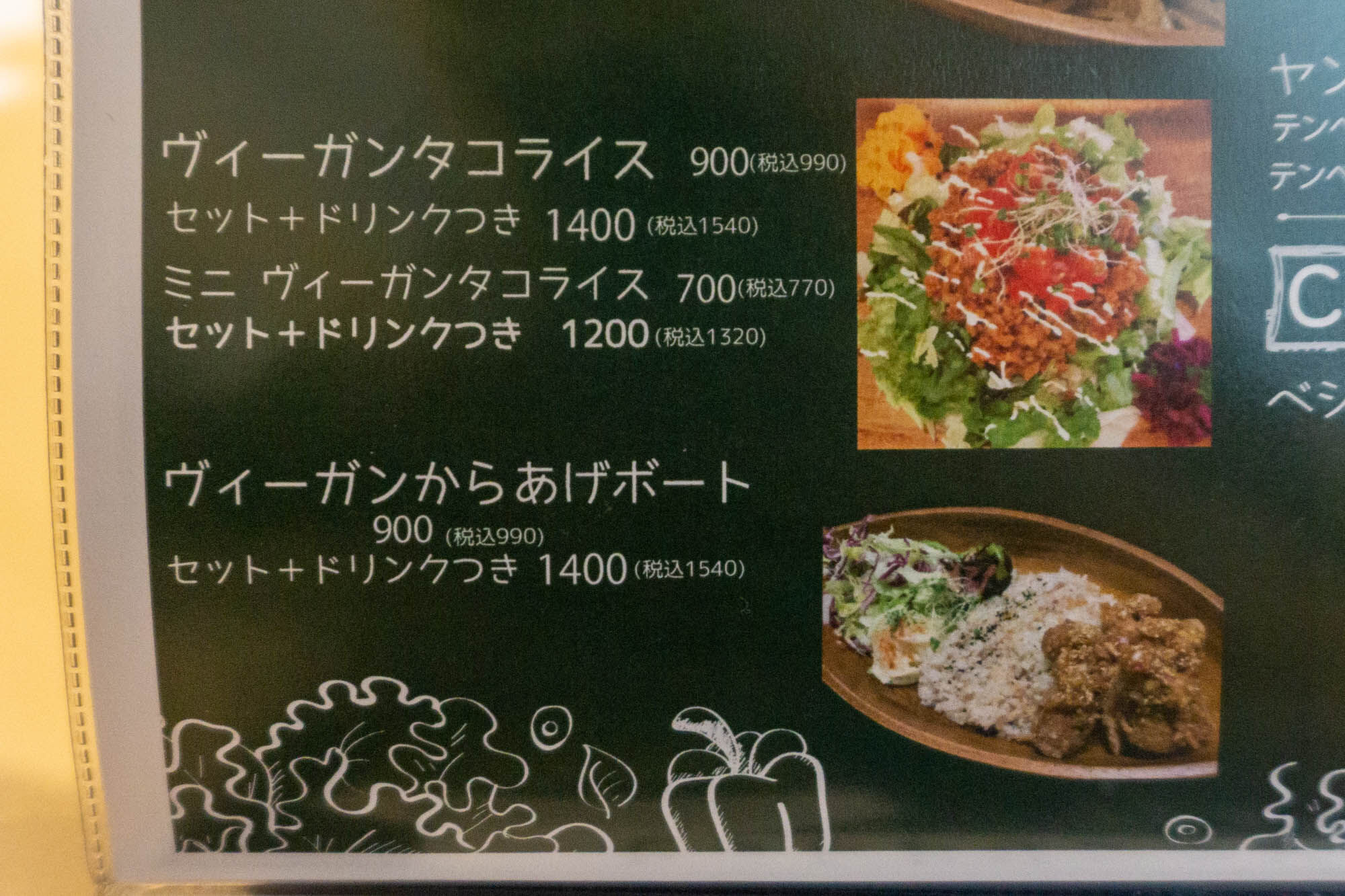 下にはこちらのメニューの看板が。ヴィーガン料理って食べたことないけど普通に美味しそう!