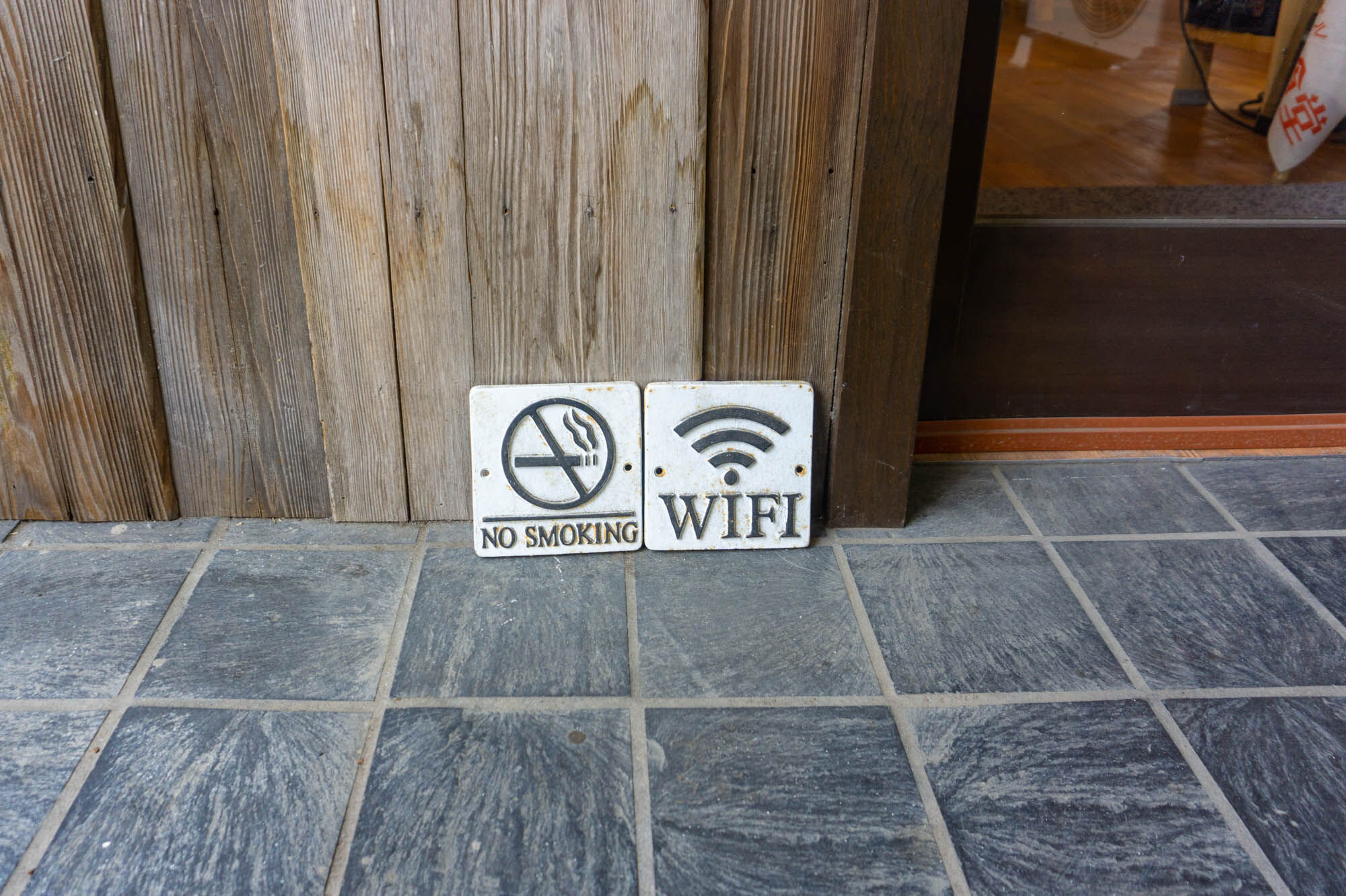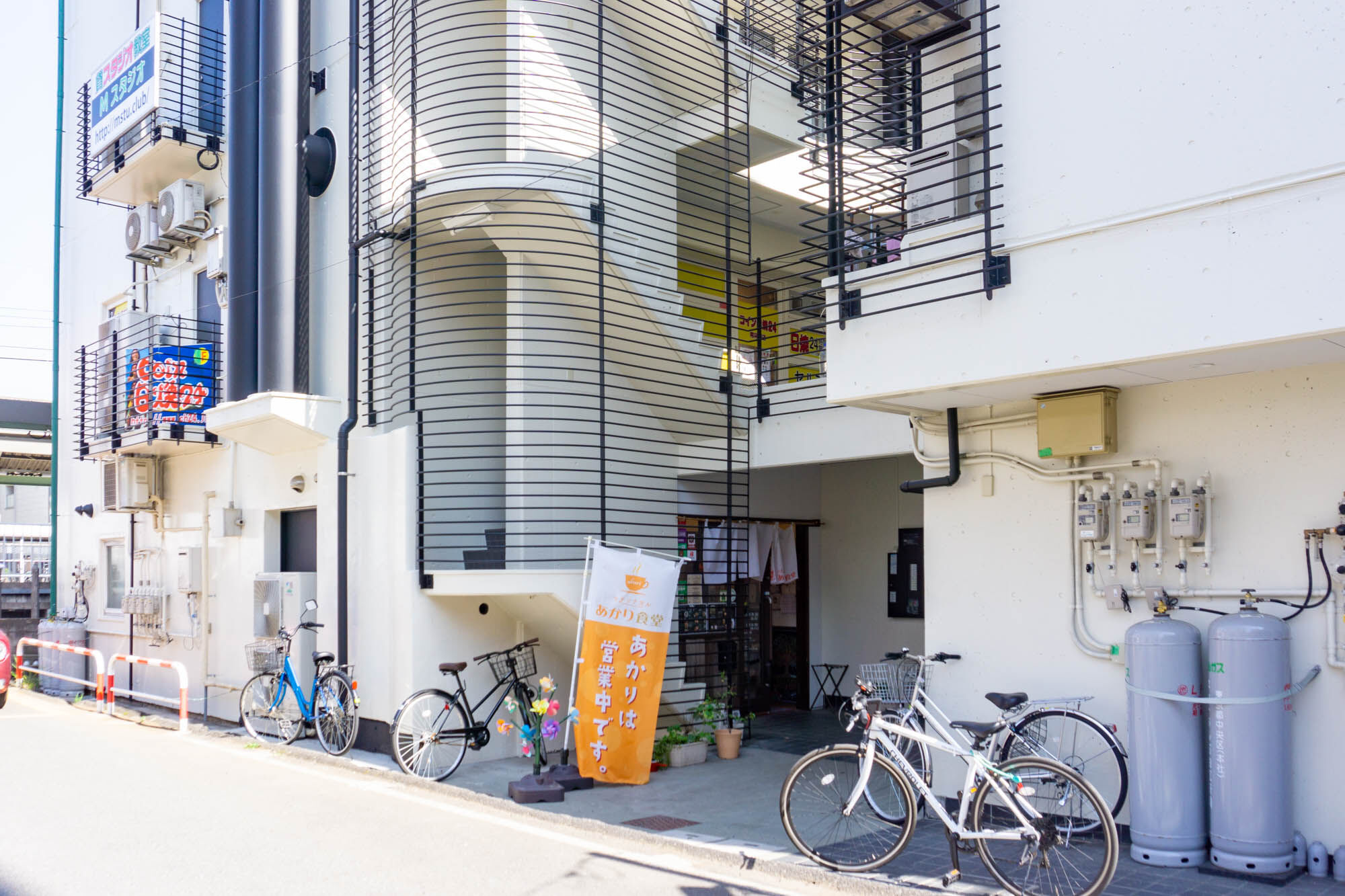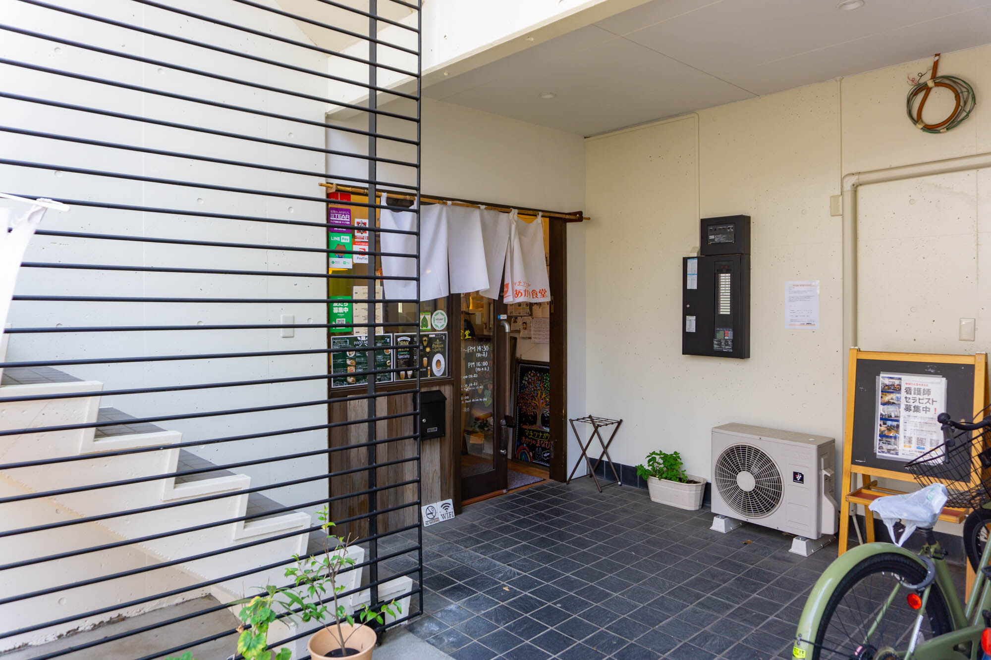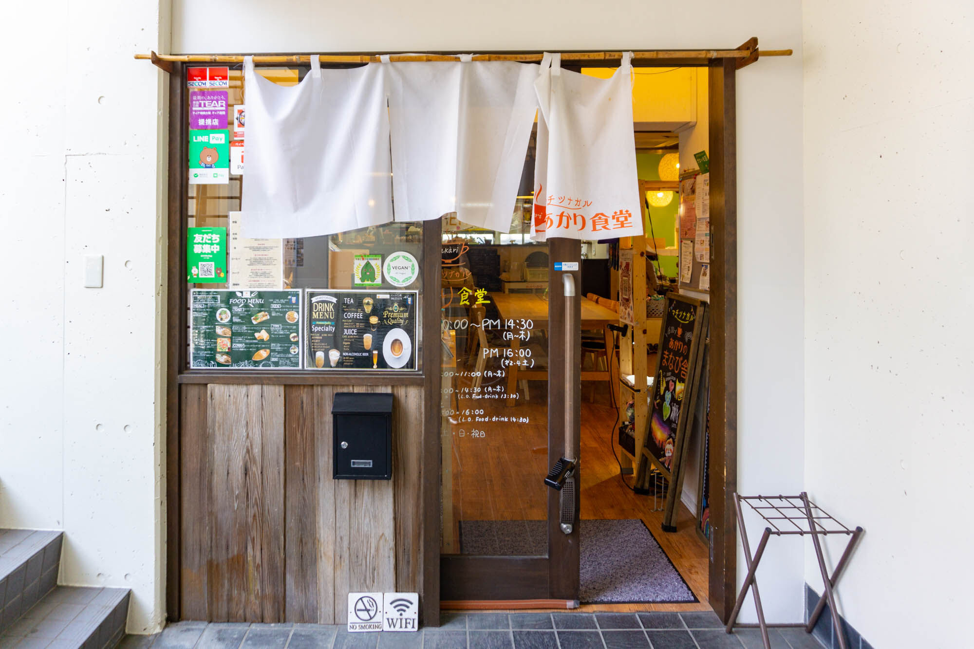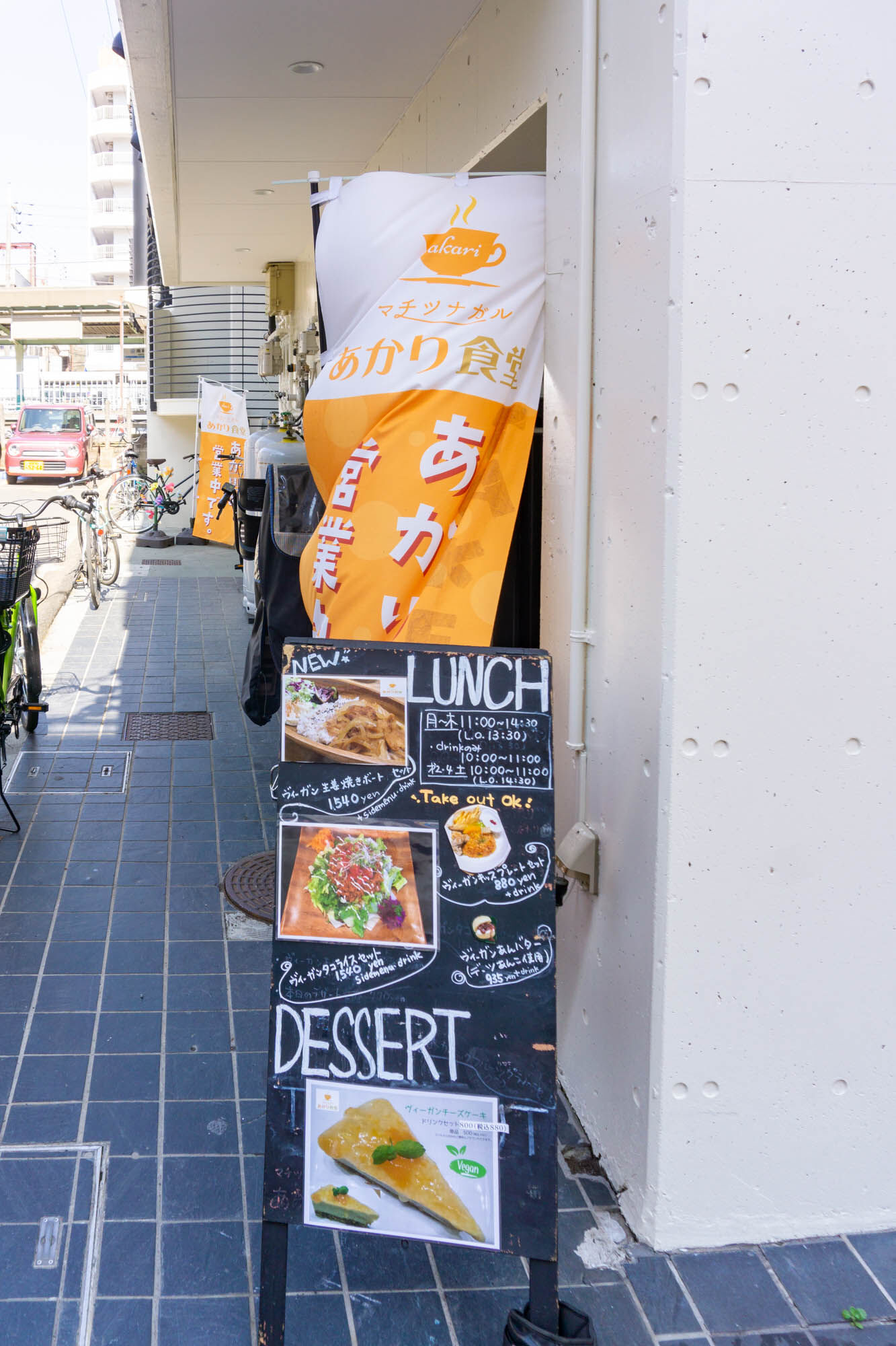 入り口は通りから少しだけ奥まったところ。オレンジののぼりが目印です。