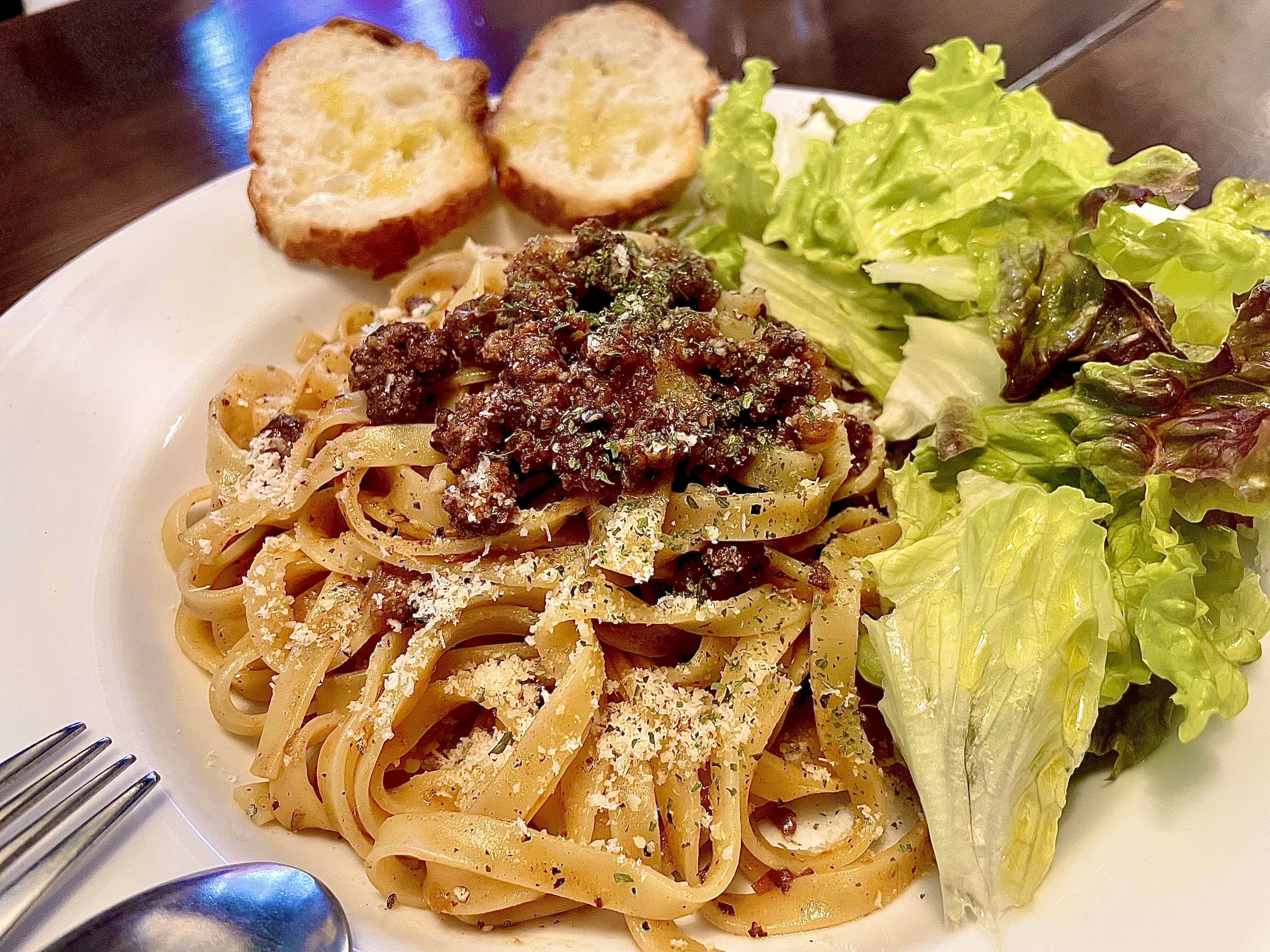 程よい硬さの平パスタに、お肉の旨みが絡んで、とても美味しい!