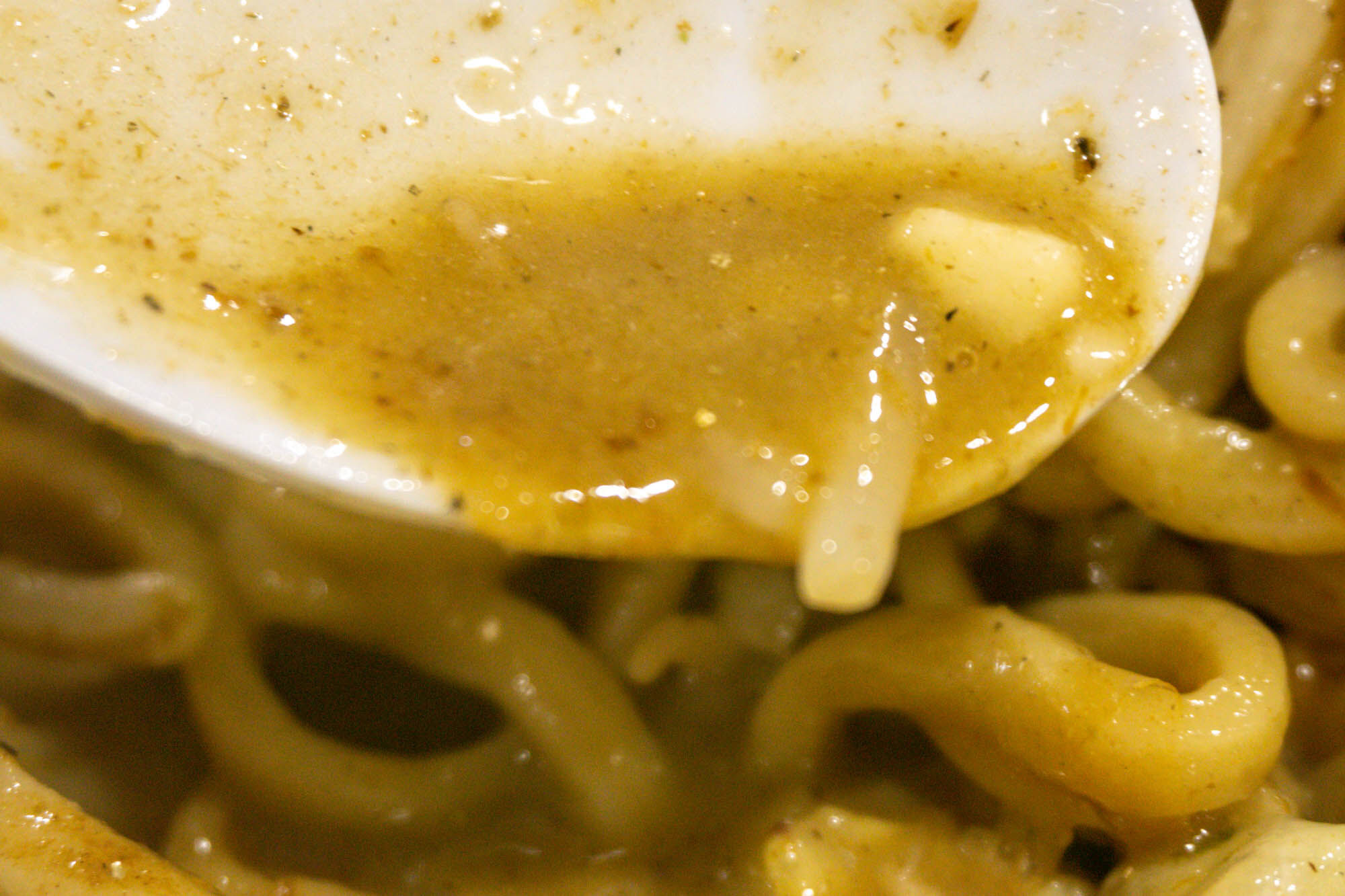 まぜそばなので、煮干しのスープが下の方にドロっと。