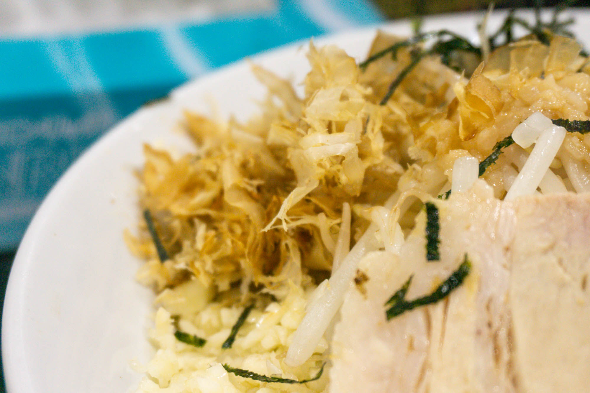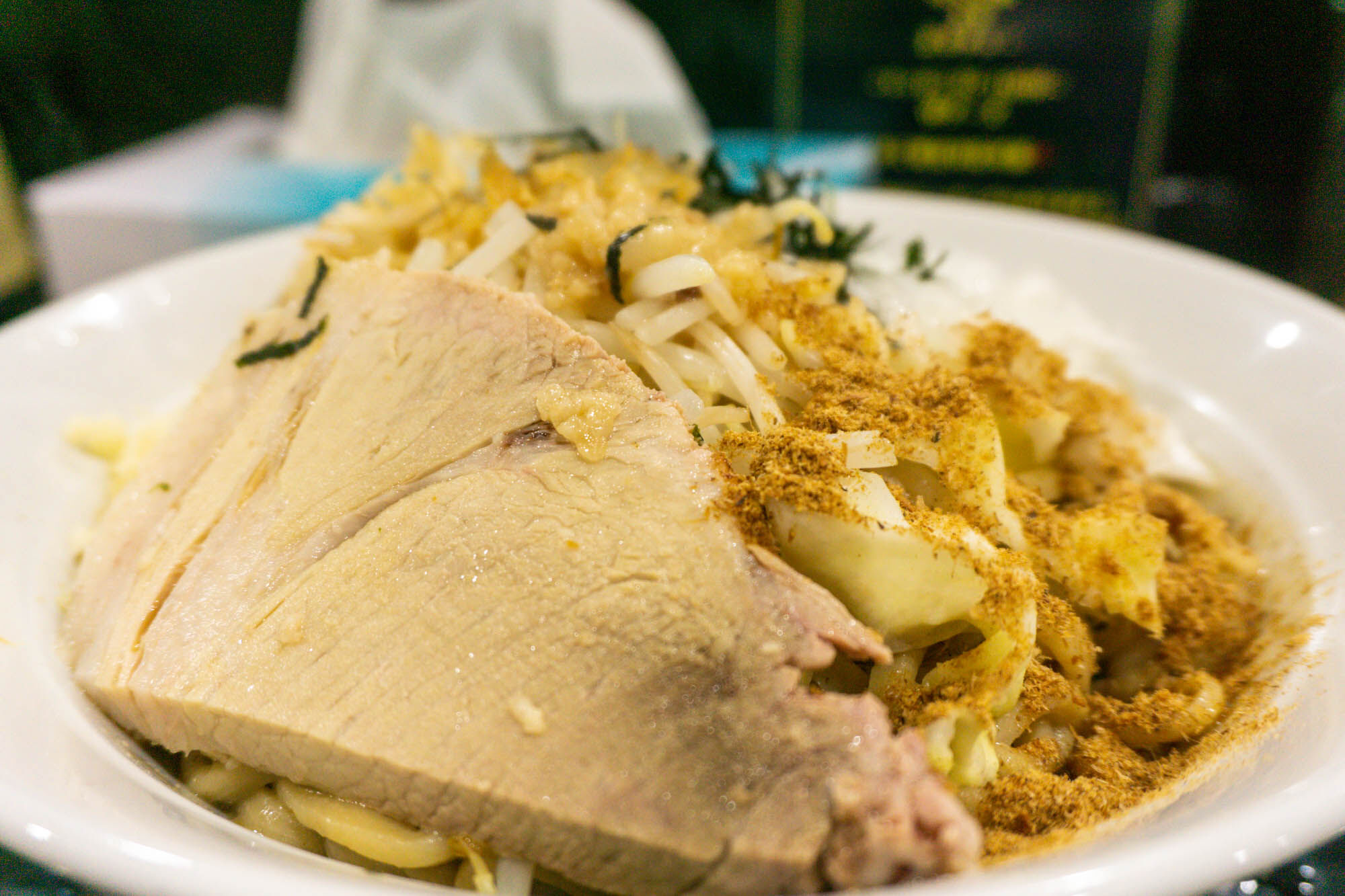 その他「キャベツ・もやし・魚粉・チャーシュー・生玉ねぎ」も乗っていて具だくさん!