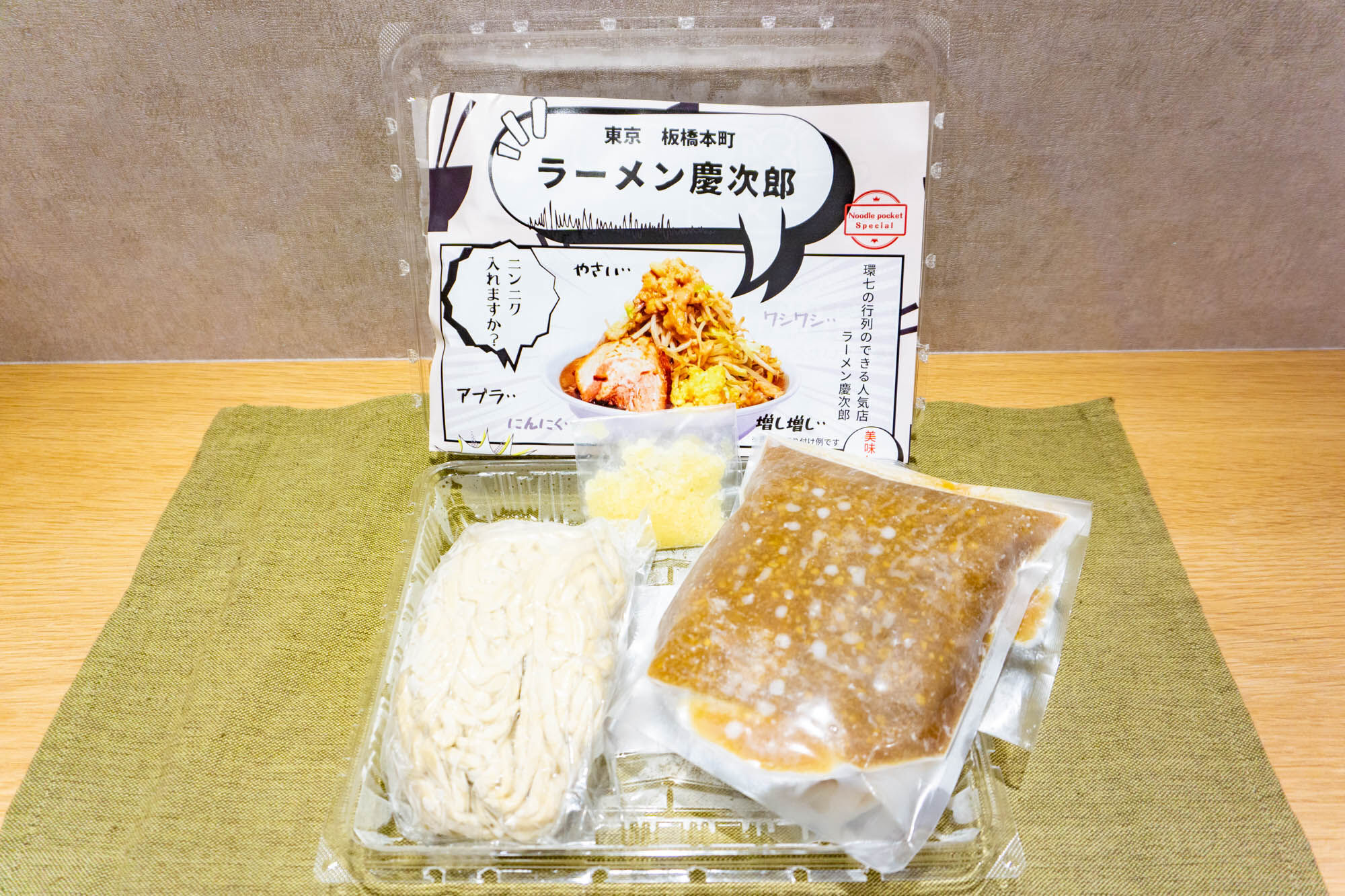 早速、慶次郎「二郎系濃厚ラーメン」を調理!…と思ったら二郎系ラーメンに大切なもやしがない!こちらは別売りみたい。(つまり自分で用意しておくやつ)やっぱり二郎系にはもやしでしょ(キャベツ派の方はキャベツを)って方は是非事前にご準備を。