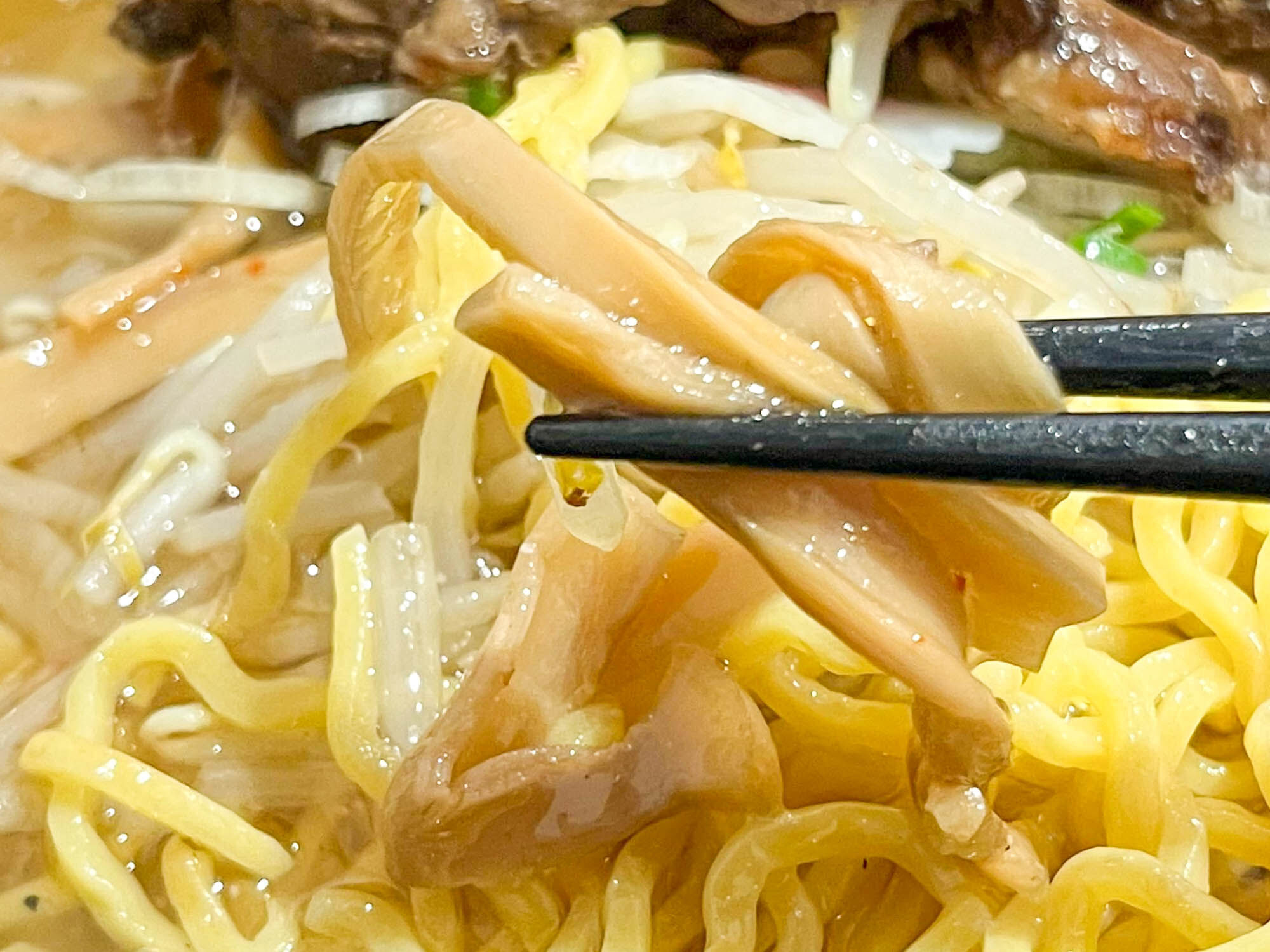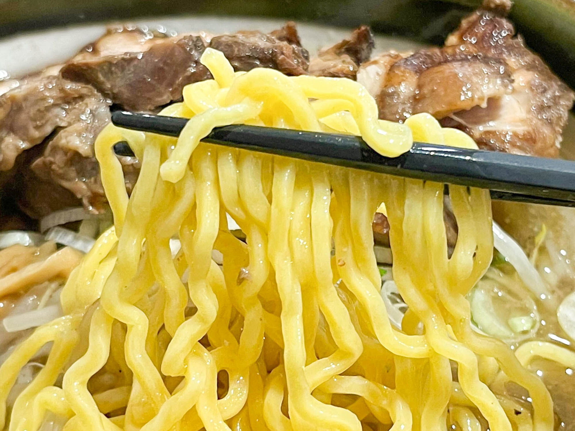 麺は味噌味と同じ、中太より少し細めのちぢれ麺。
