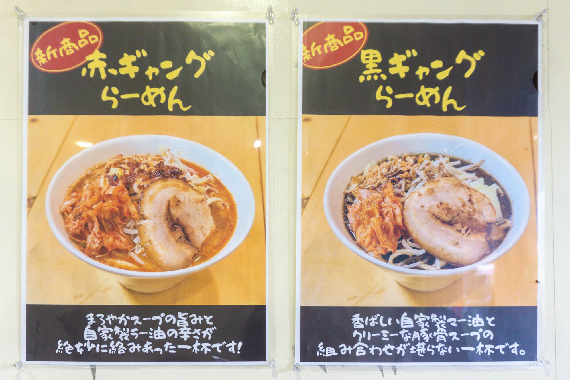新商品の「赤ギャングらーめん・黒ギャングらーめん」。