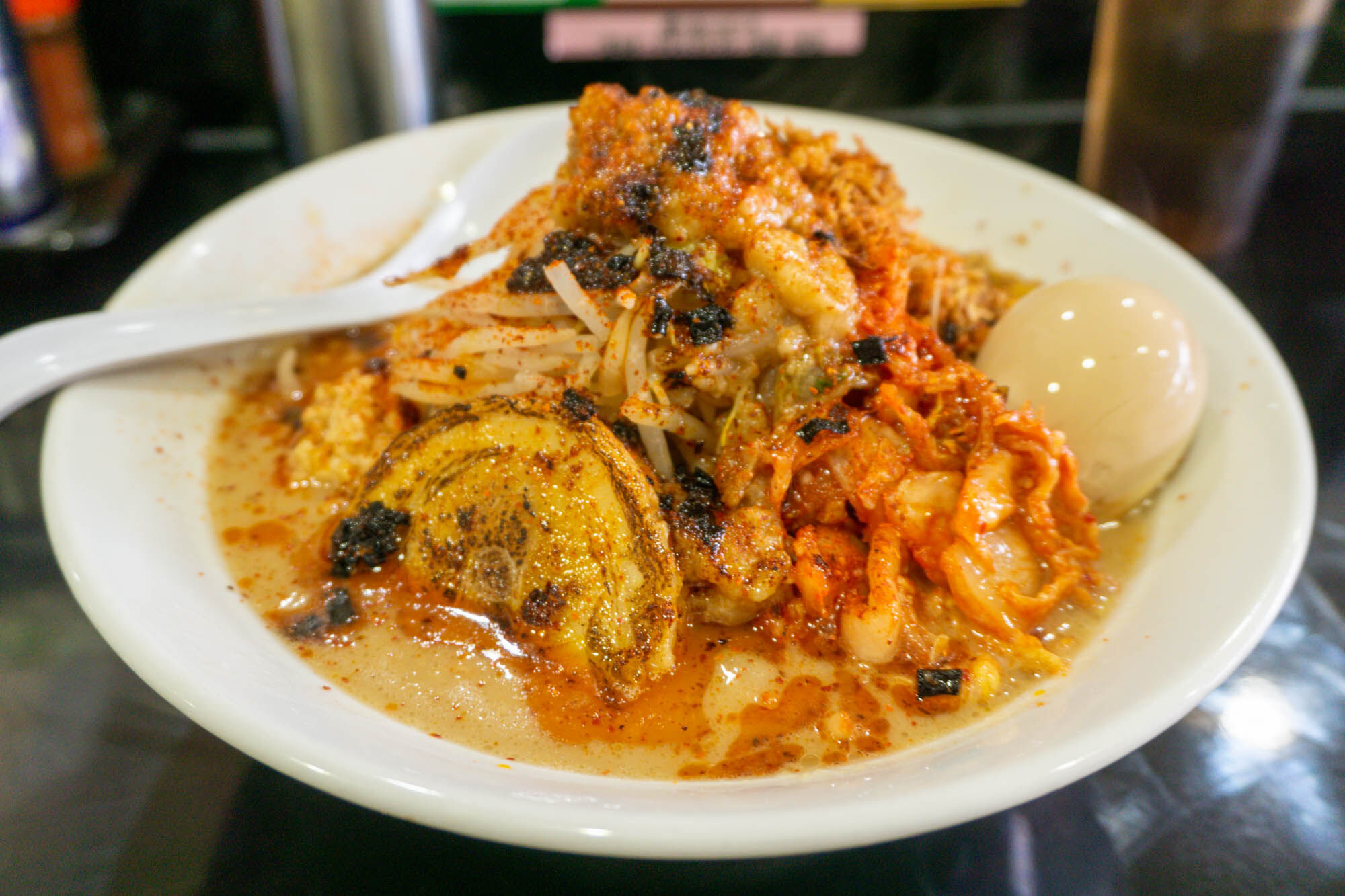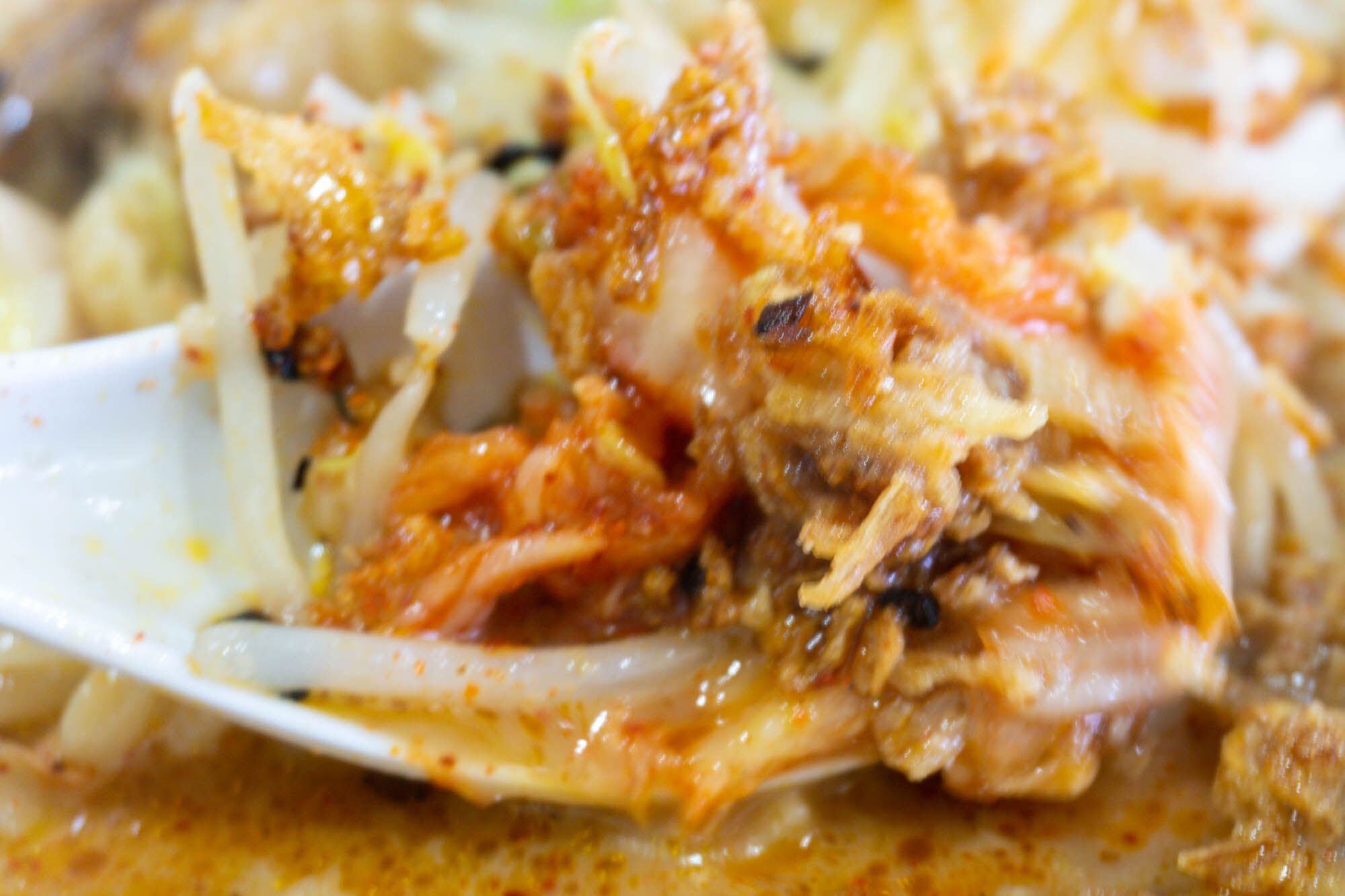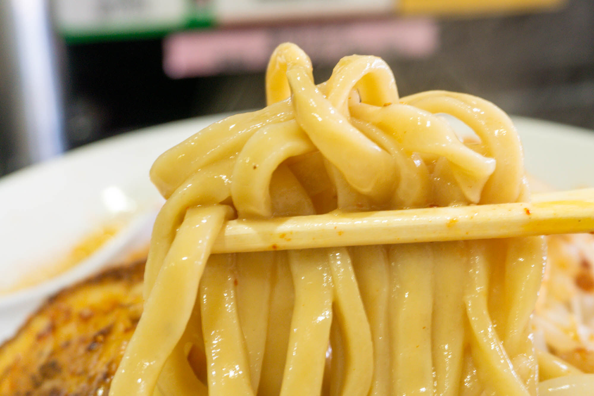 スープは自家製ラー油とまろやかなスープが混ざっていて、まさにカロリーな見た目!