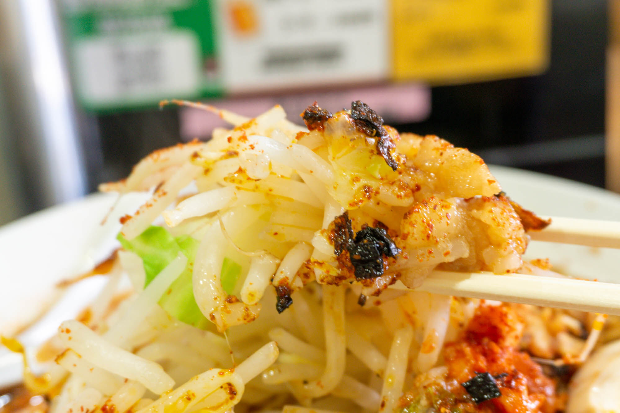 上にはたっぷりの野菜が乗っていて、アブラも美味しそう…!