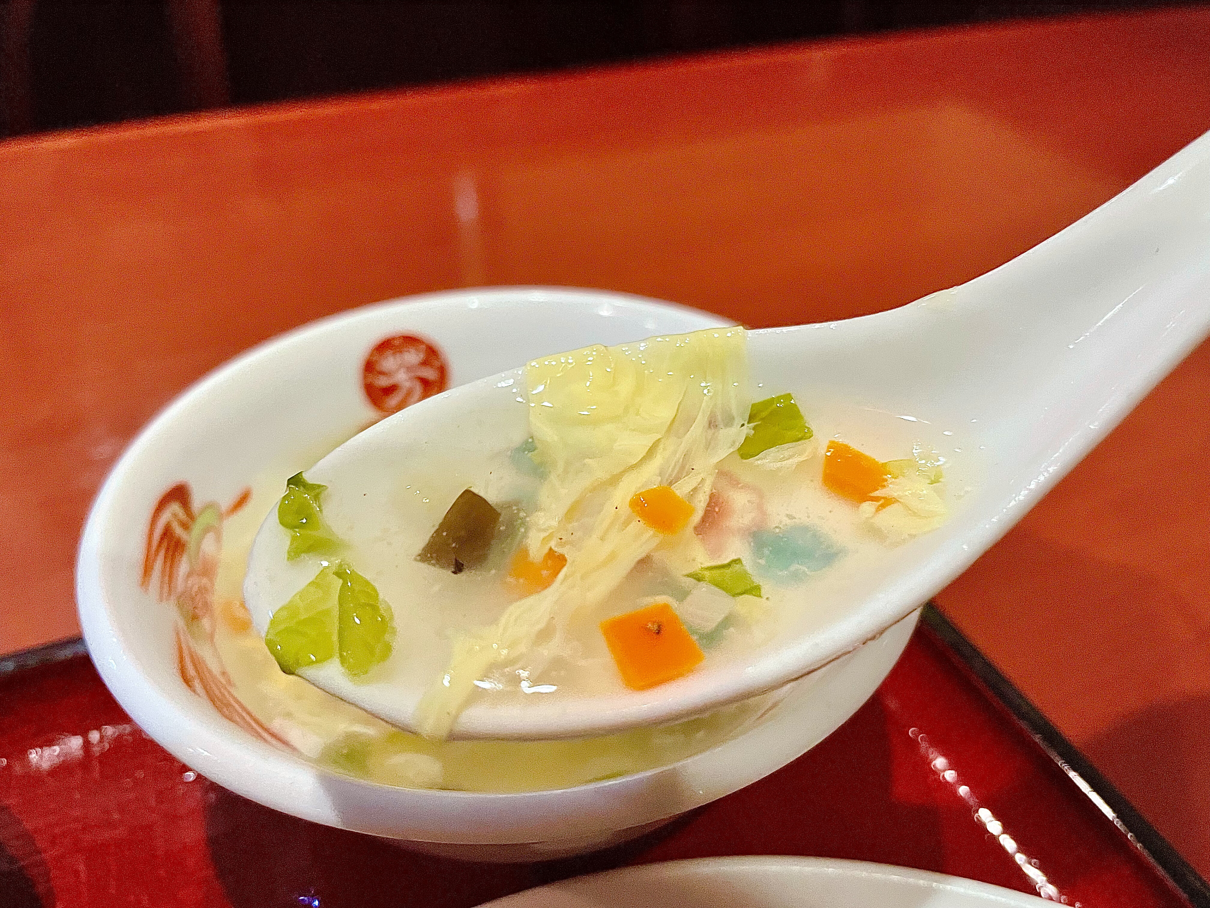 優しい味の中華スープが口の中を程よく中和してくれて、どんどん食べられちゃう。