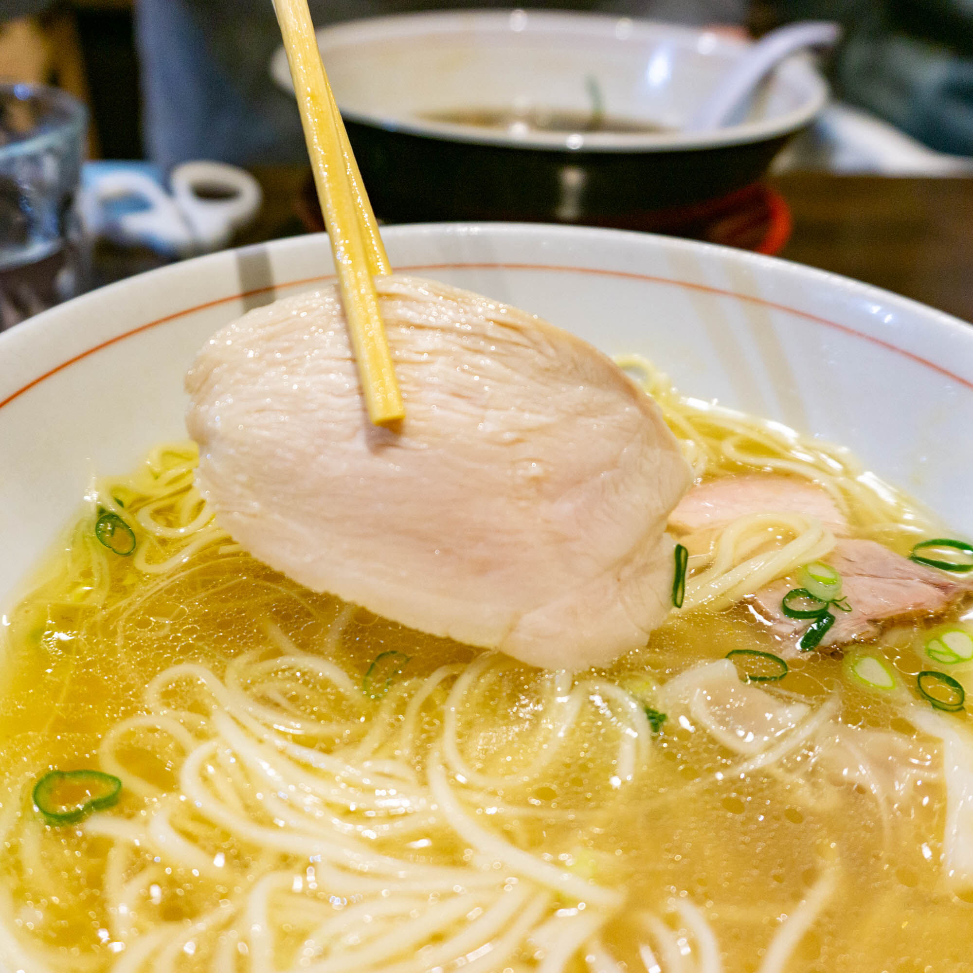 この透きとおったスープ、こってりではないのに旨味がすごいいきおいでお口と脳内にしみこんでいきました。スープだけでしばらく味わえる。