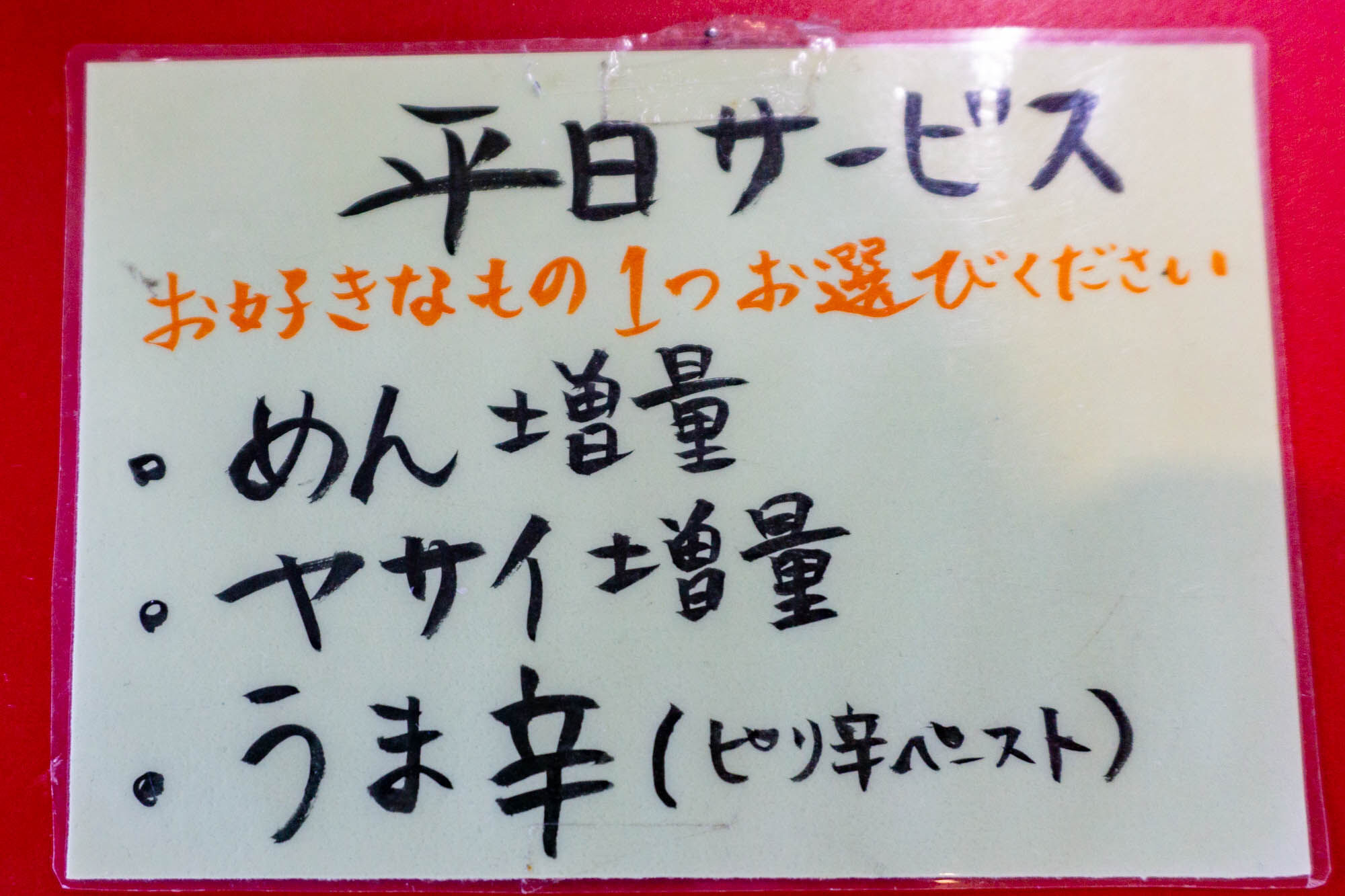 更に、平日サービスの中から「ヤサイ増量」も注文。