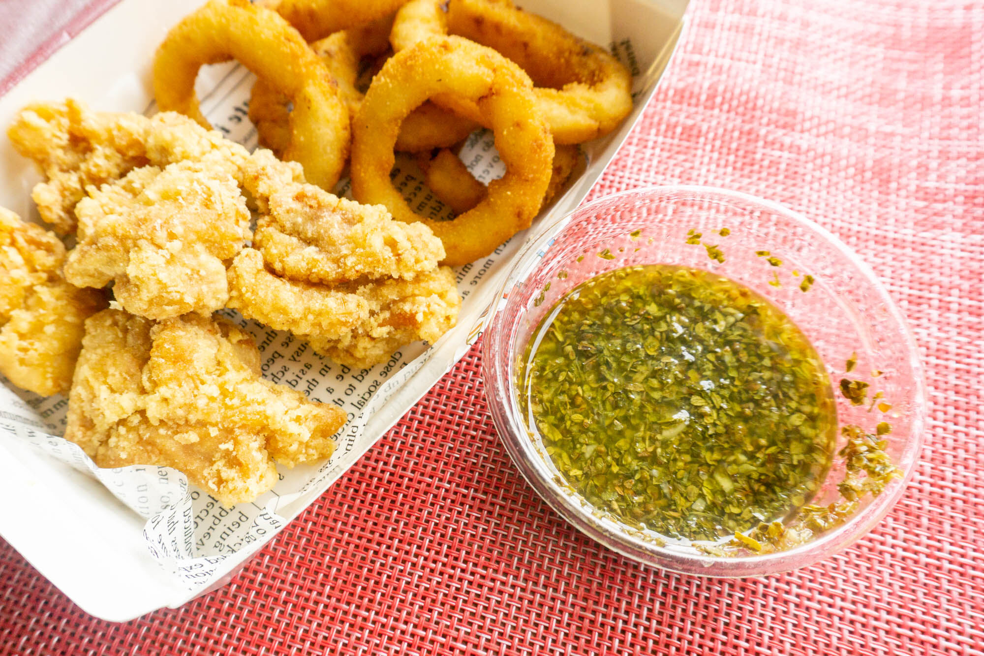 そうして今回悩んで選んだ「唐揚げ5個&ハーフオニオン」と「チミチューリソース」。