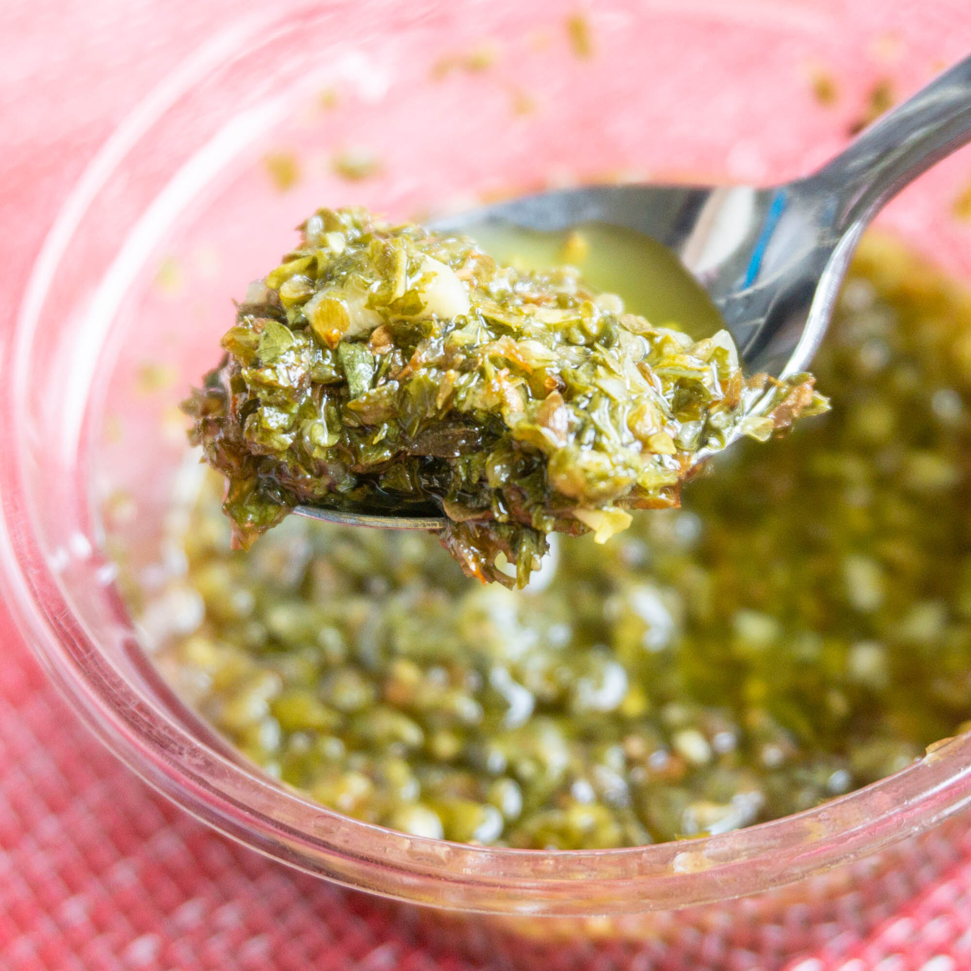ハーブがたっぷり入っています。調べてみると、「パセリ・玉ねぎ・にんにく」などがふんだんに使われているソースみたい。