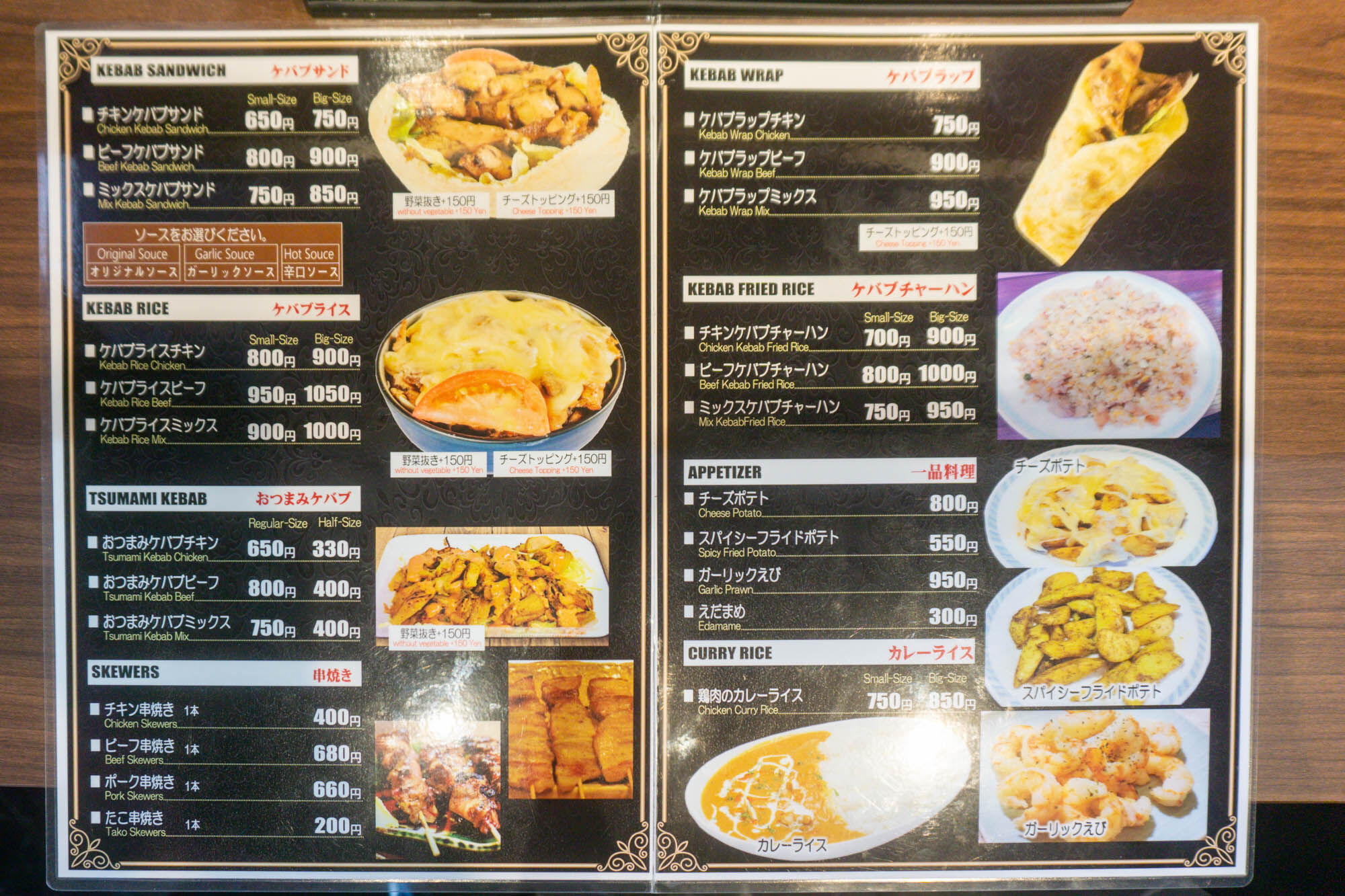 こちらはフードメニュー。ケバブ料理がたくさんありました。