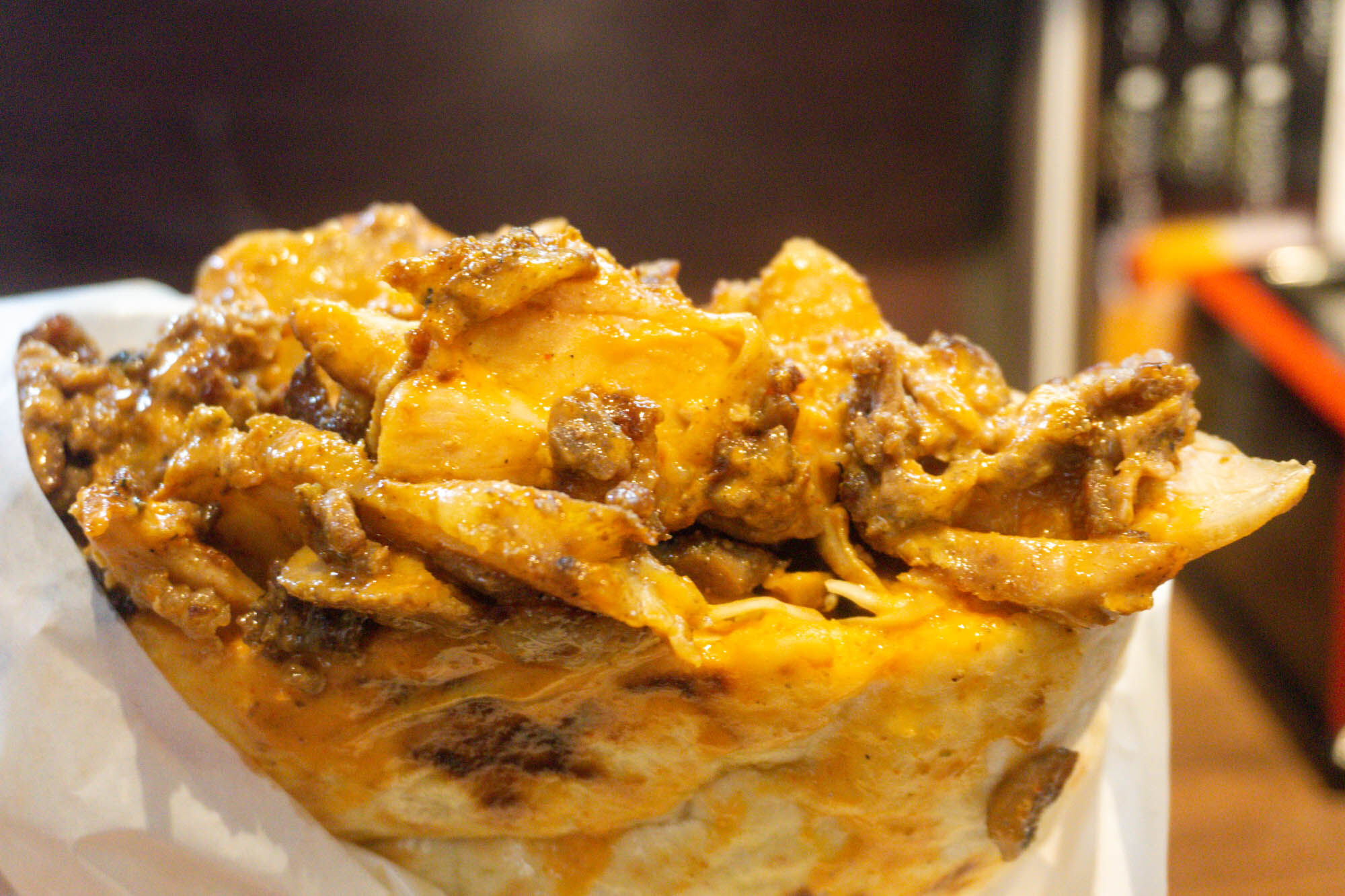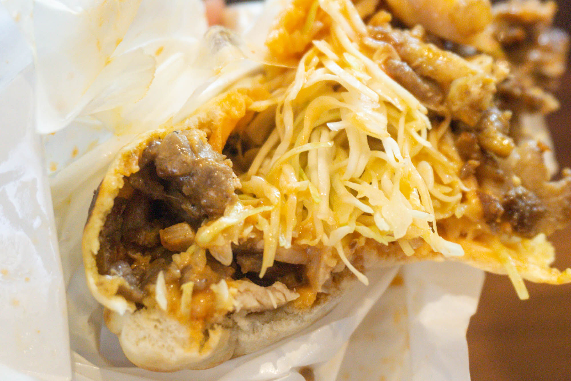 包み紙を開けるとたっぷり入ったケバブ!!