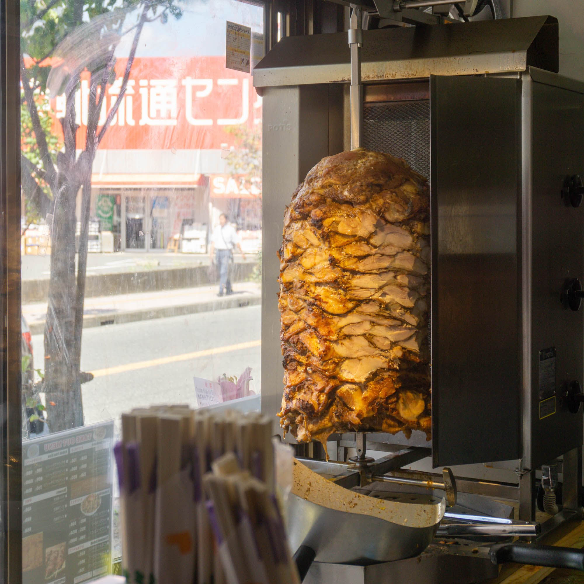 テイクアウトの窓口すぐの場所には大きなケバブが!!