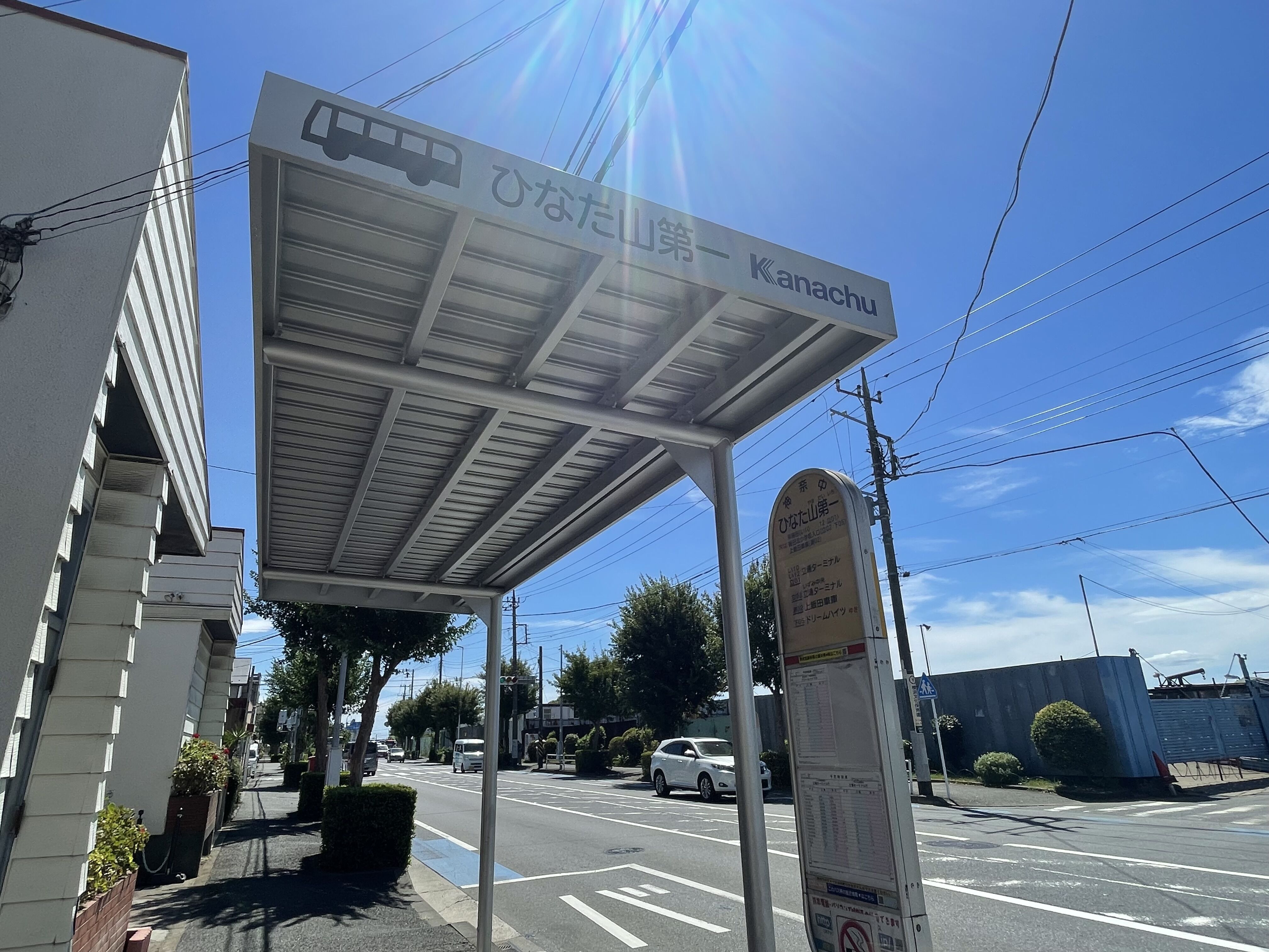 お店のすぐそばに、神奈川中央交通の「ひなた山第一」停留所があります。