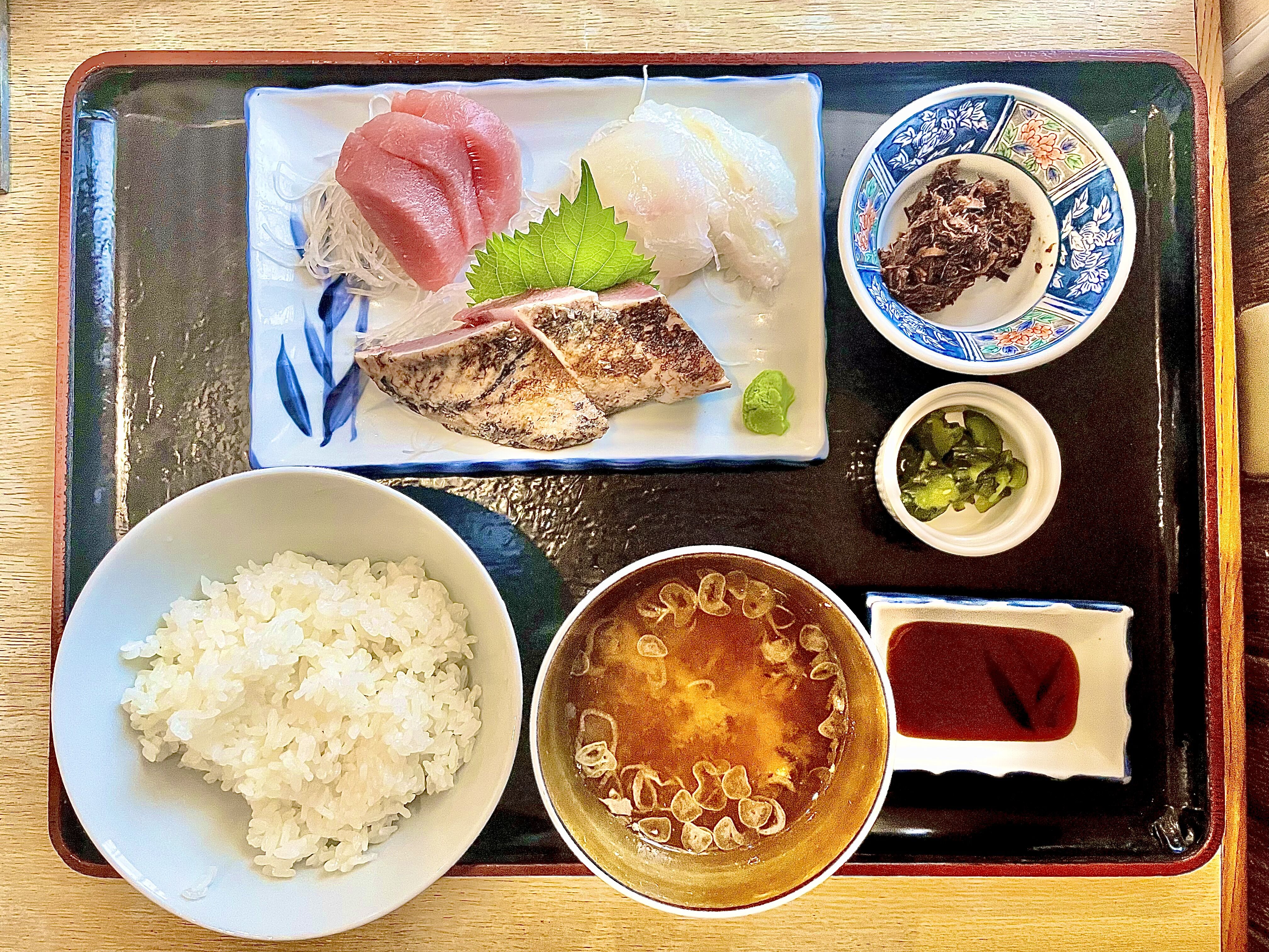 5分ほどで、注文していた「サシミ定食おまかせ三品」が到着!