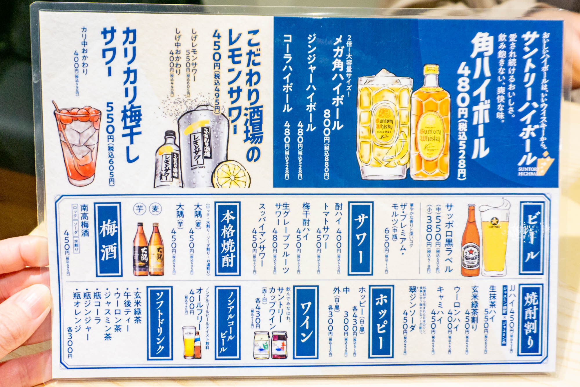 メニューはもつ煮込み、もつ刺、串焼きなど、もつ料理の他にもお酒に合うメニューが色々ありました。