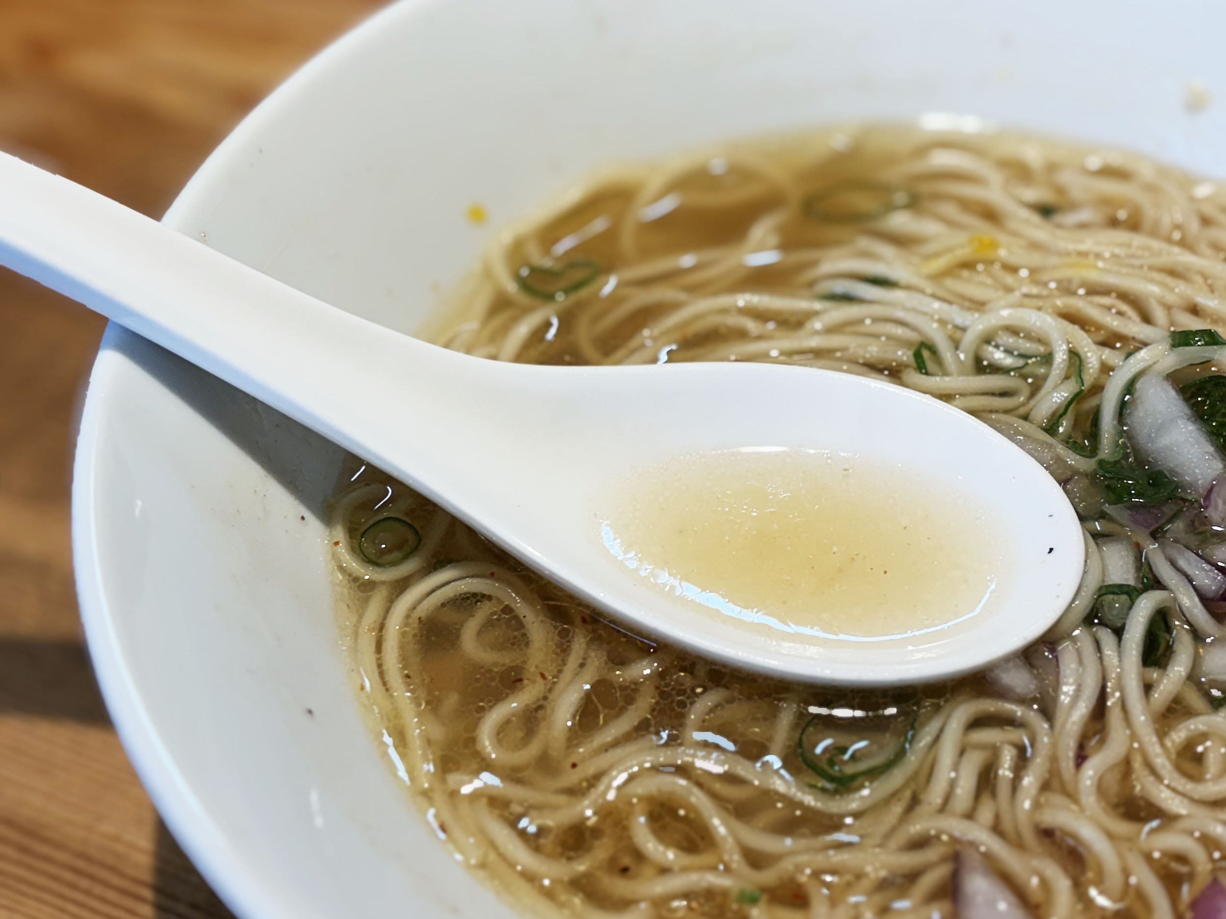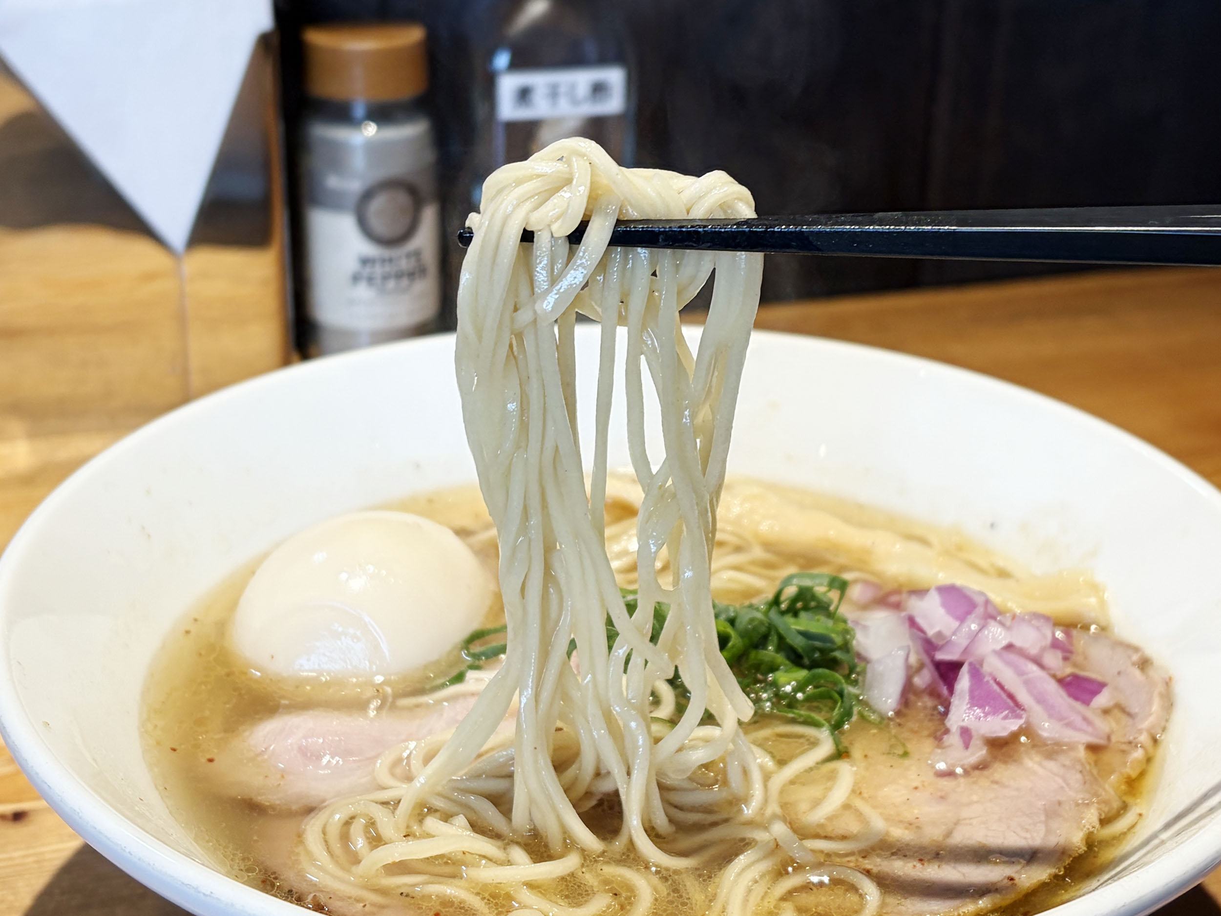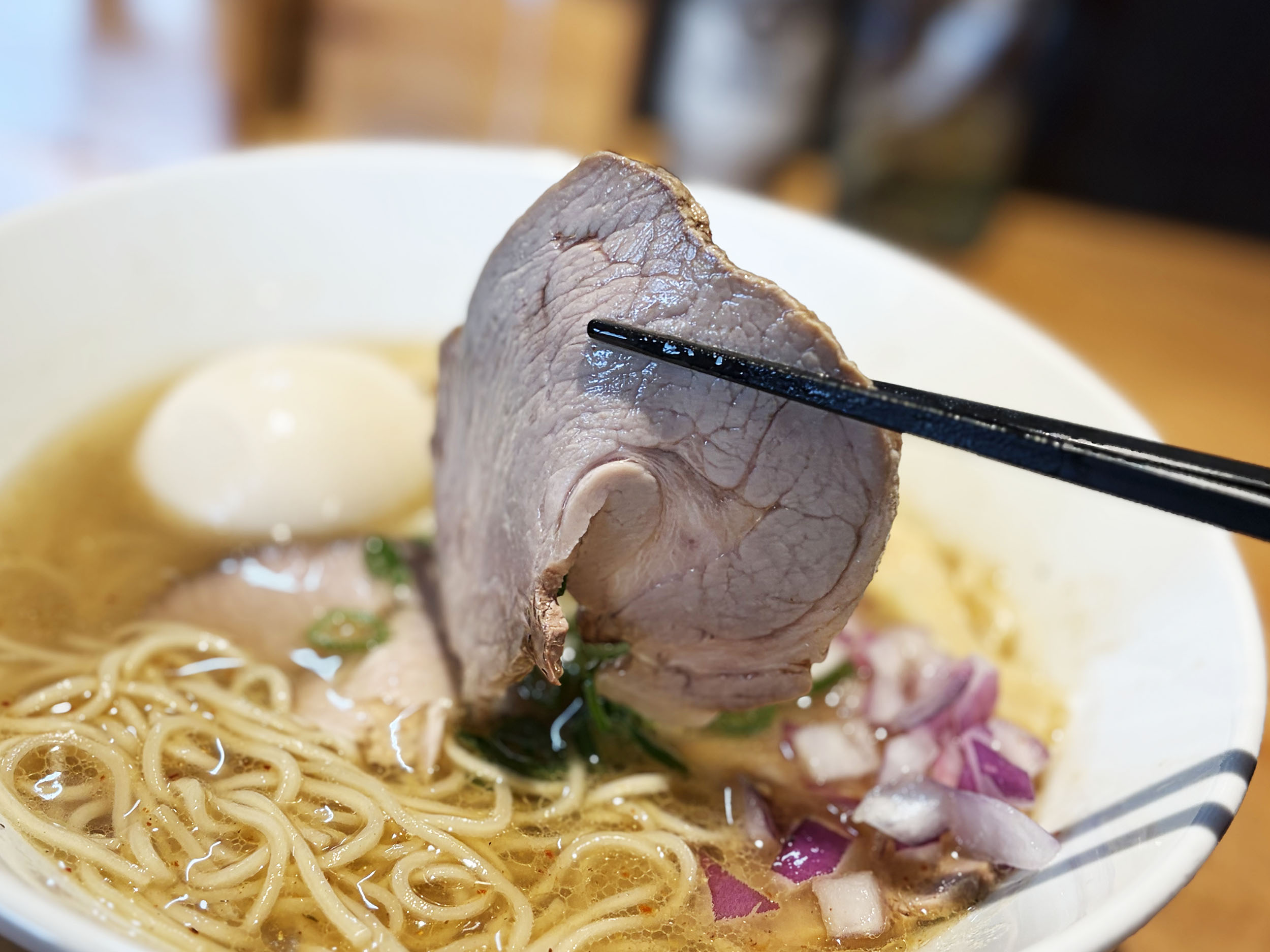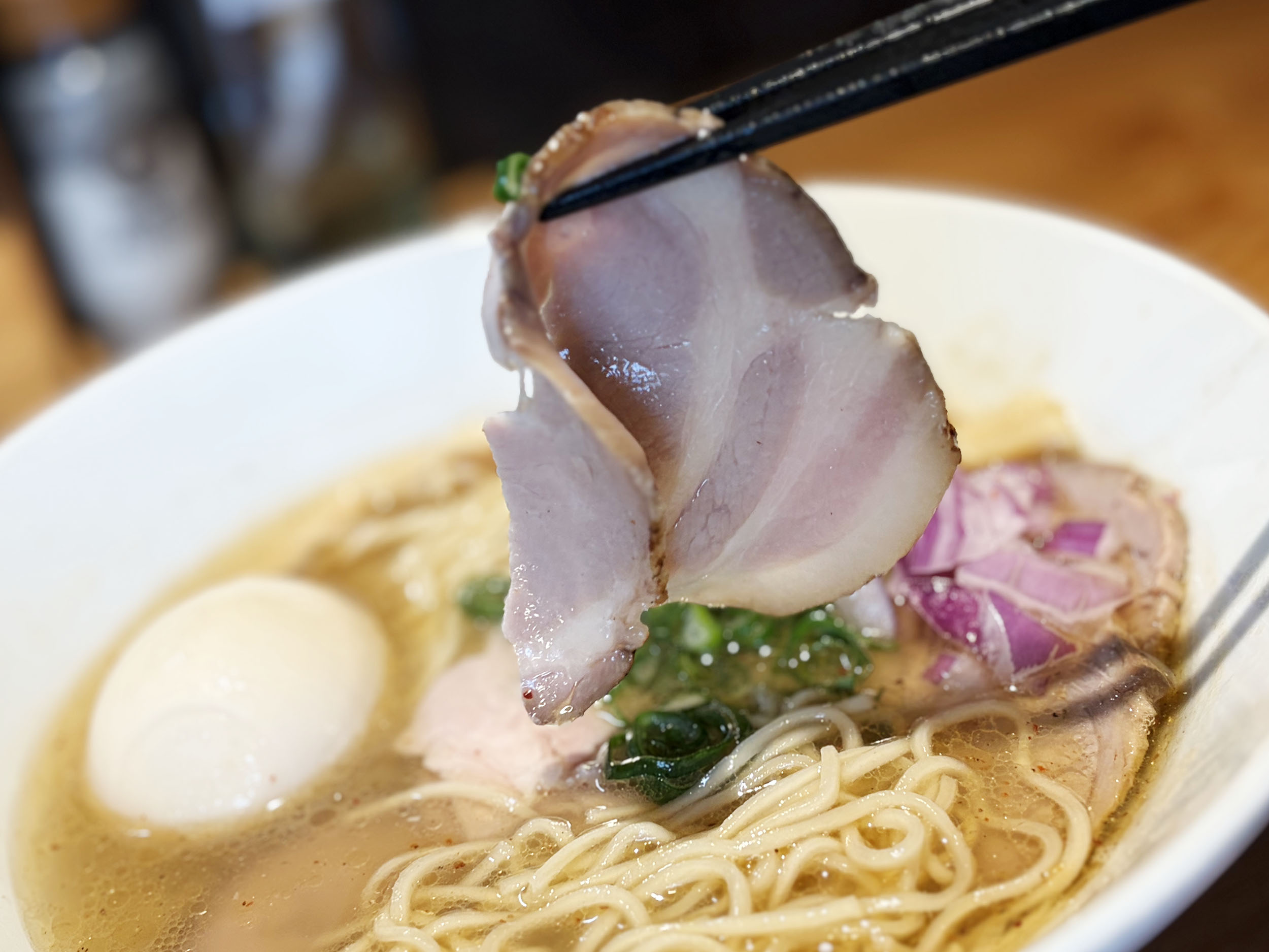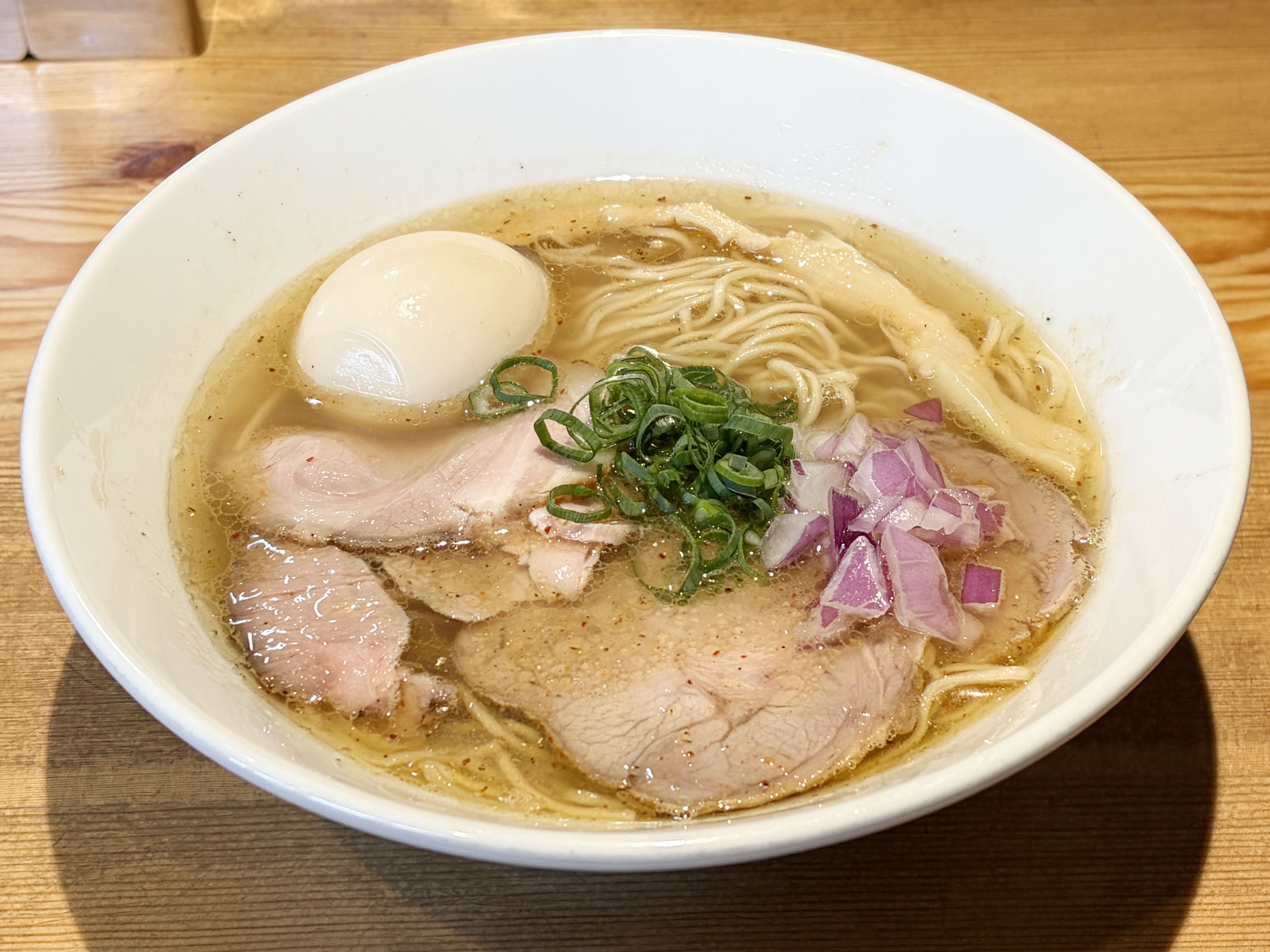 透き通った塩スープの中にバランスよく配置されたお肉や卵に思わずうっとり。
