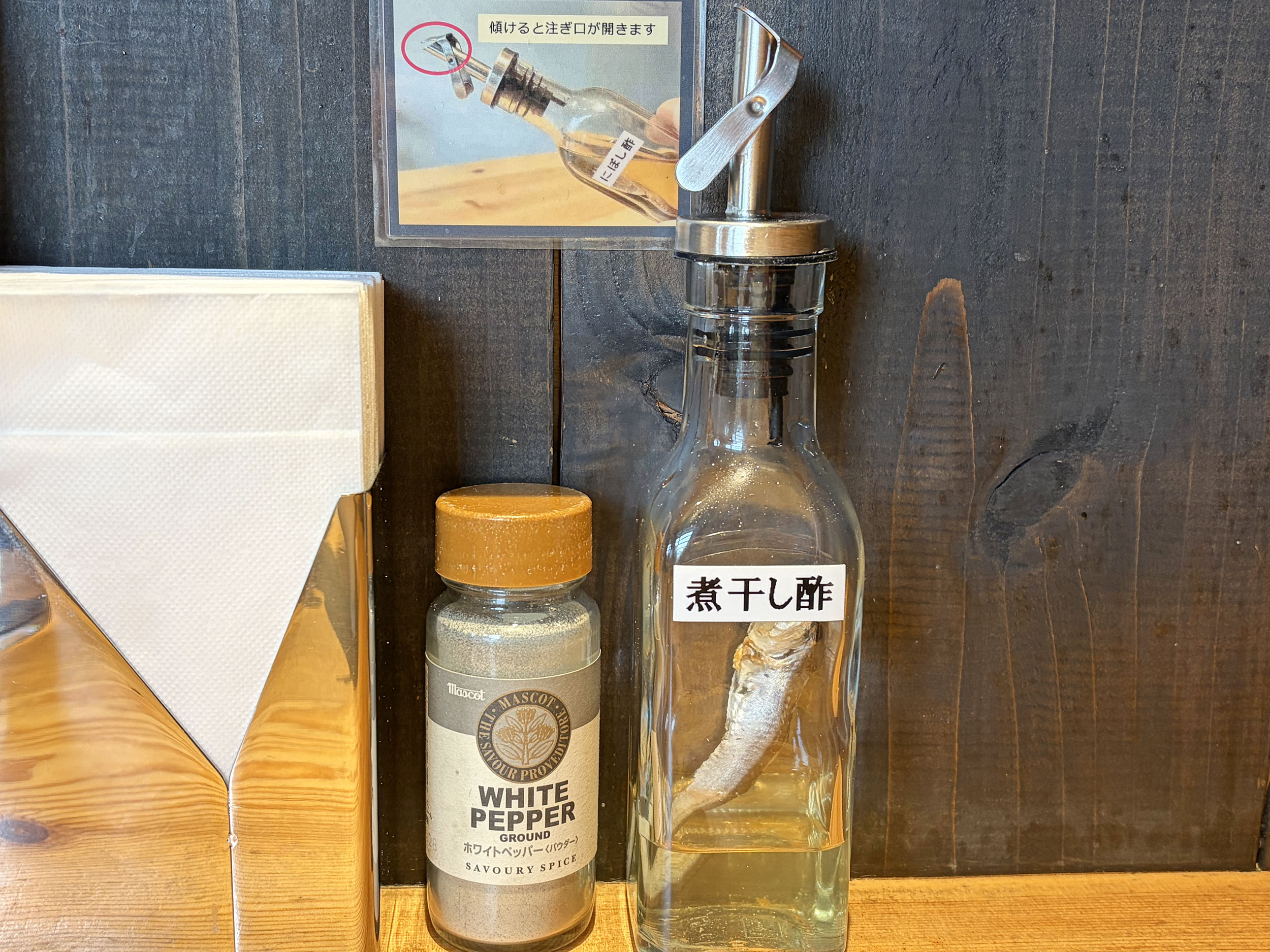 テーブルには煮干し酢が置いてありました。