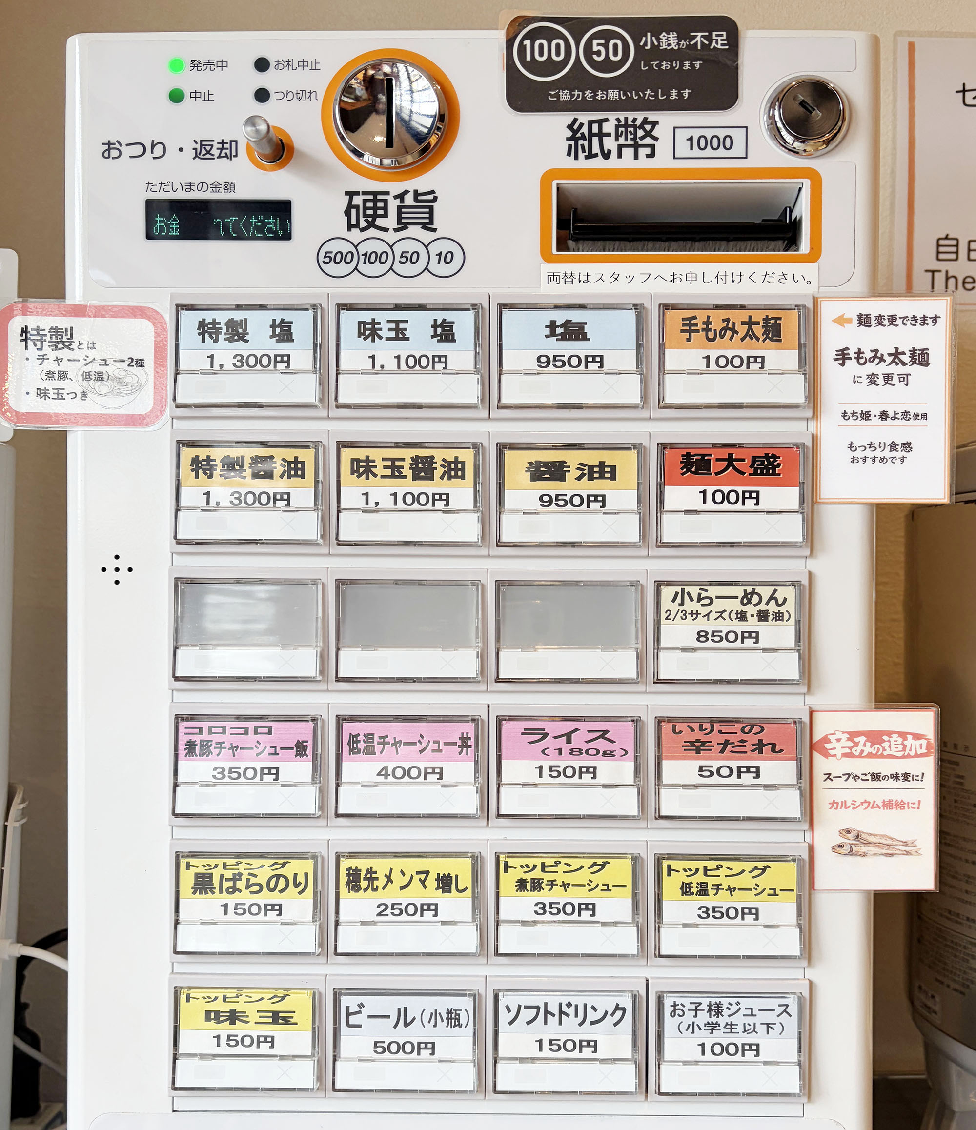注文は食券で行うスタイルです。