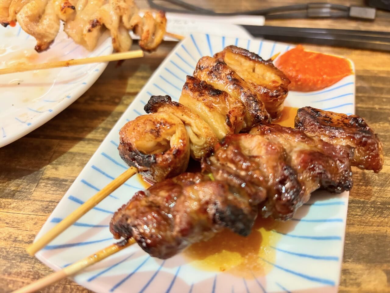 かしらは噛むほど旨みが出て、つくねはジューシー。しろは脂がくどくなくて意外と軽いし、かわは香ばしさで一気に酒が進むやつ。