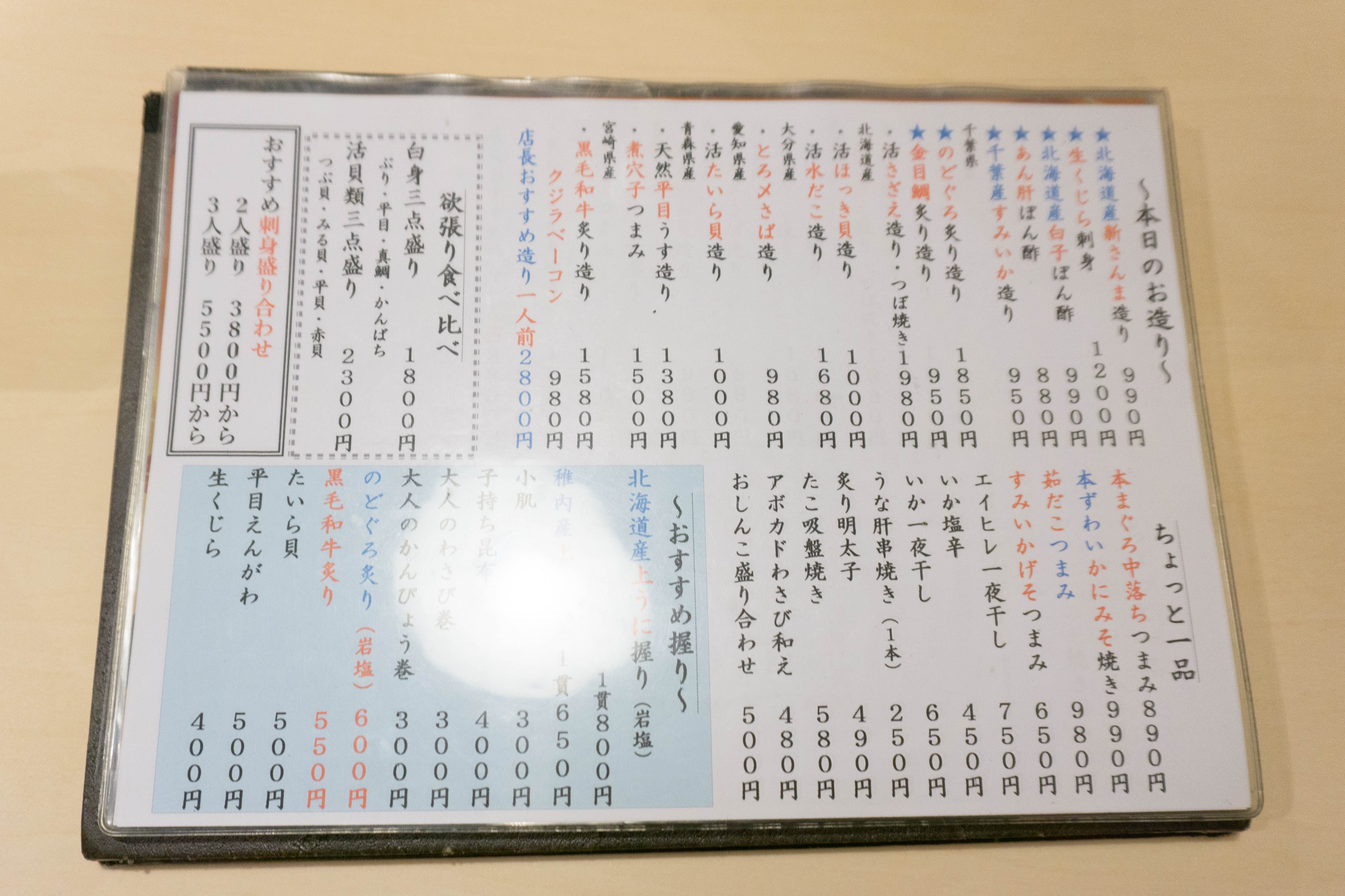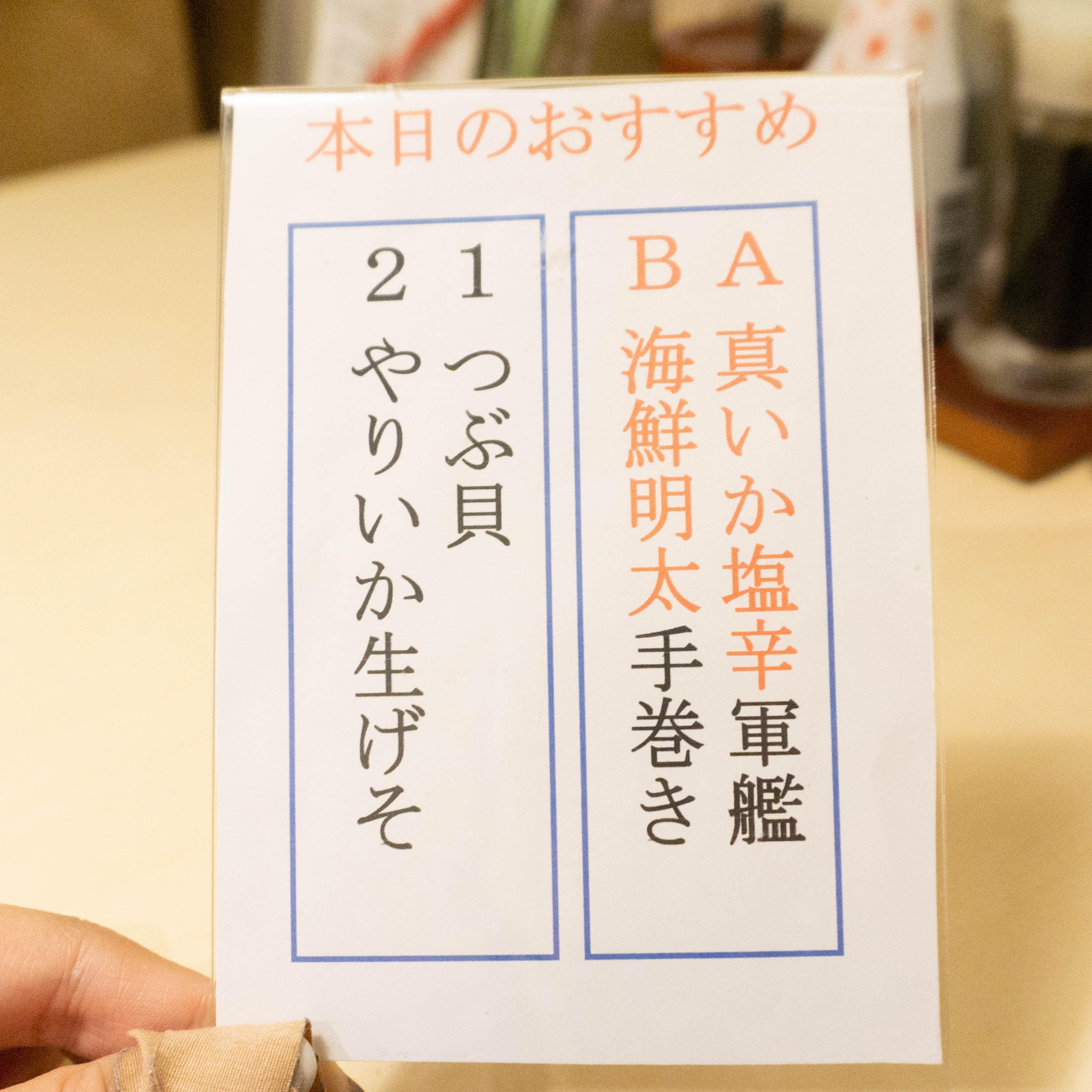 おすすめと書いてあるチェック欄は日替わりなのか、テーブルにメニューが置いてありました。
