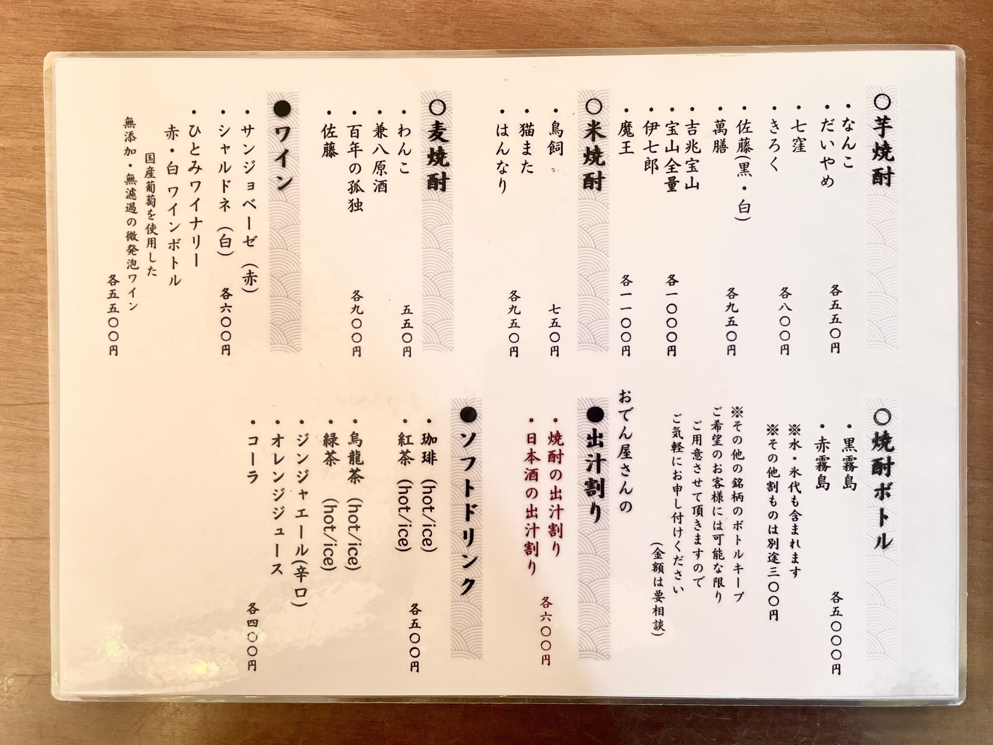 こちらはドリンクメニュー。