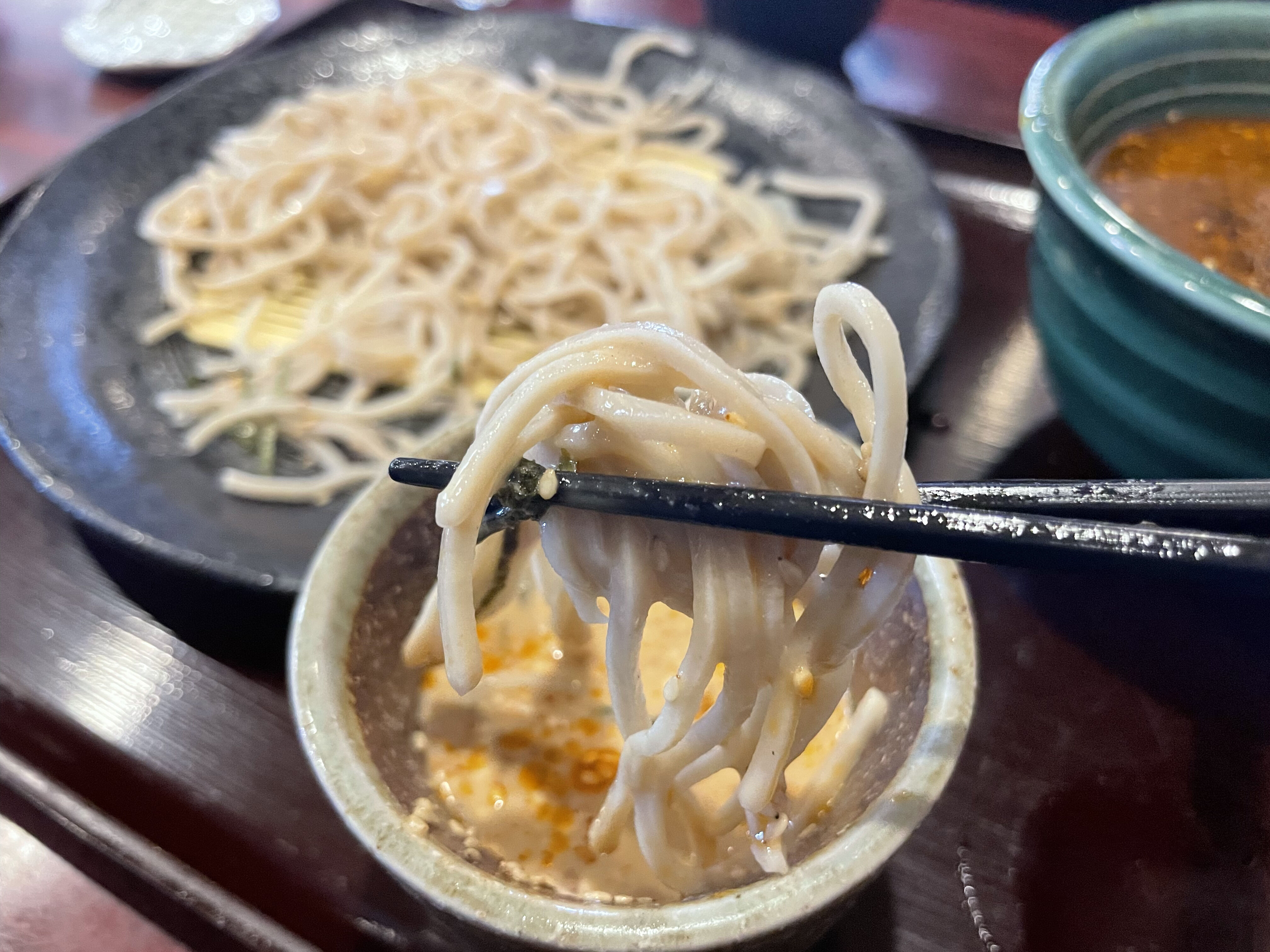 そばをタレにつけると、フワッと胡麻の香りがします。