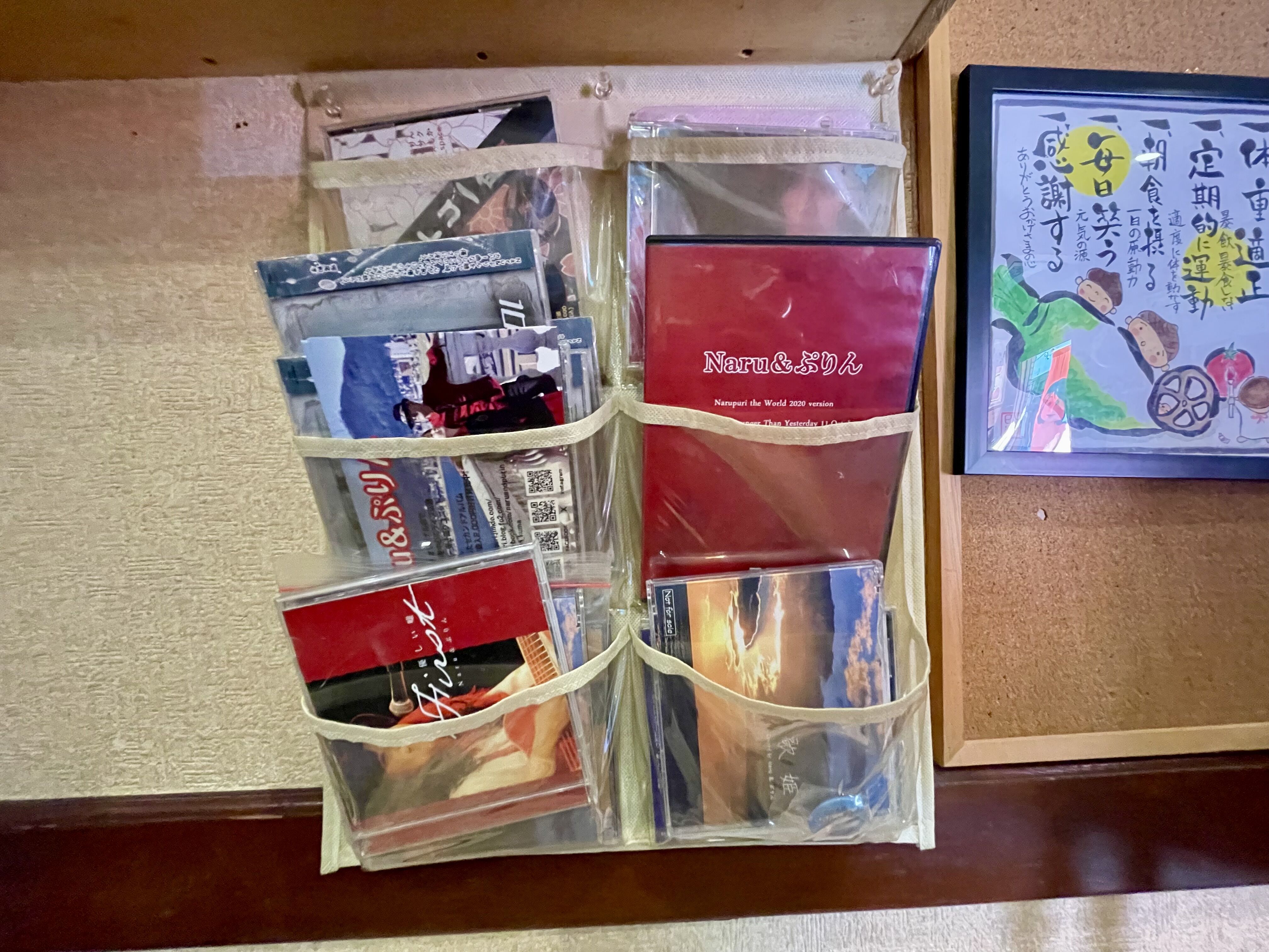 店内で生演奏ライブができるそうで、地元アーティストのチラシやCDも置いてありました!
