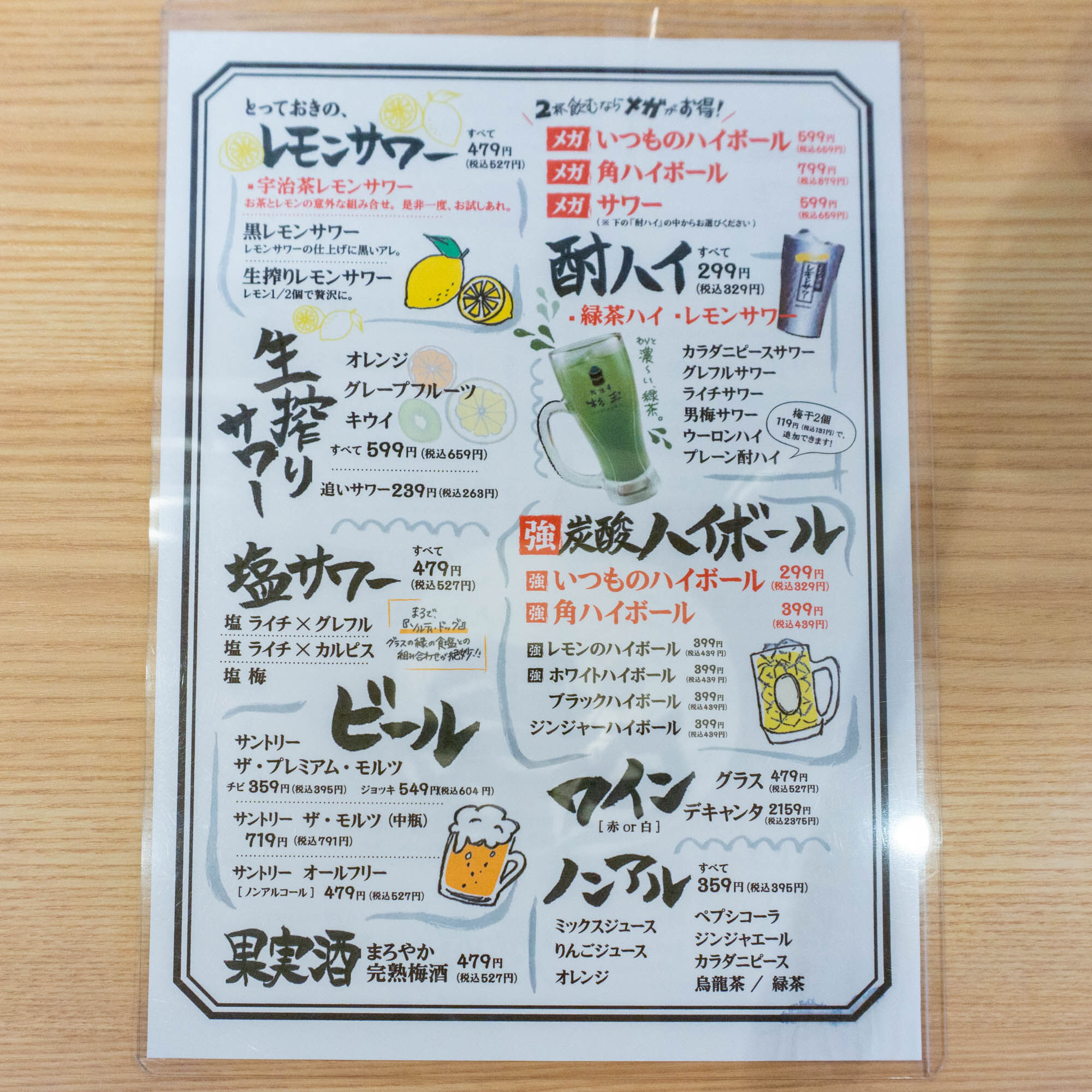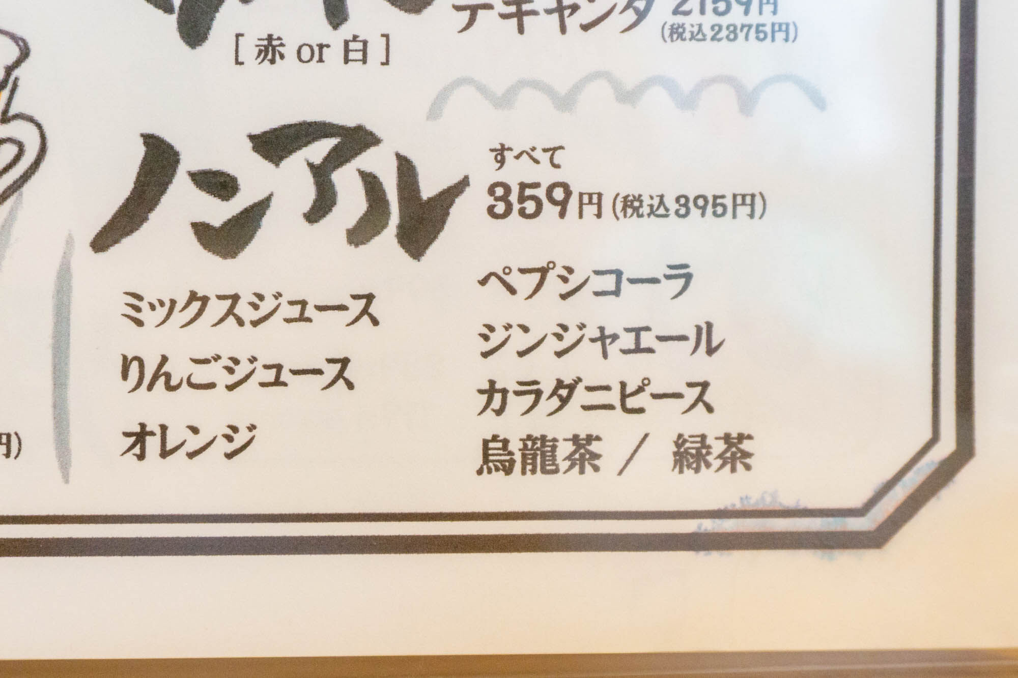 お酒やソフトドリンクメニュー。