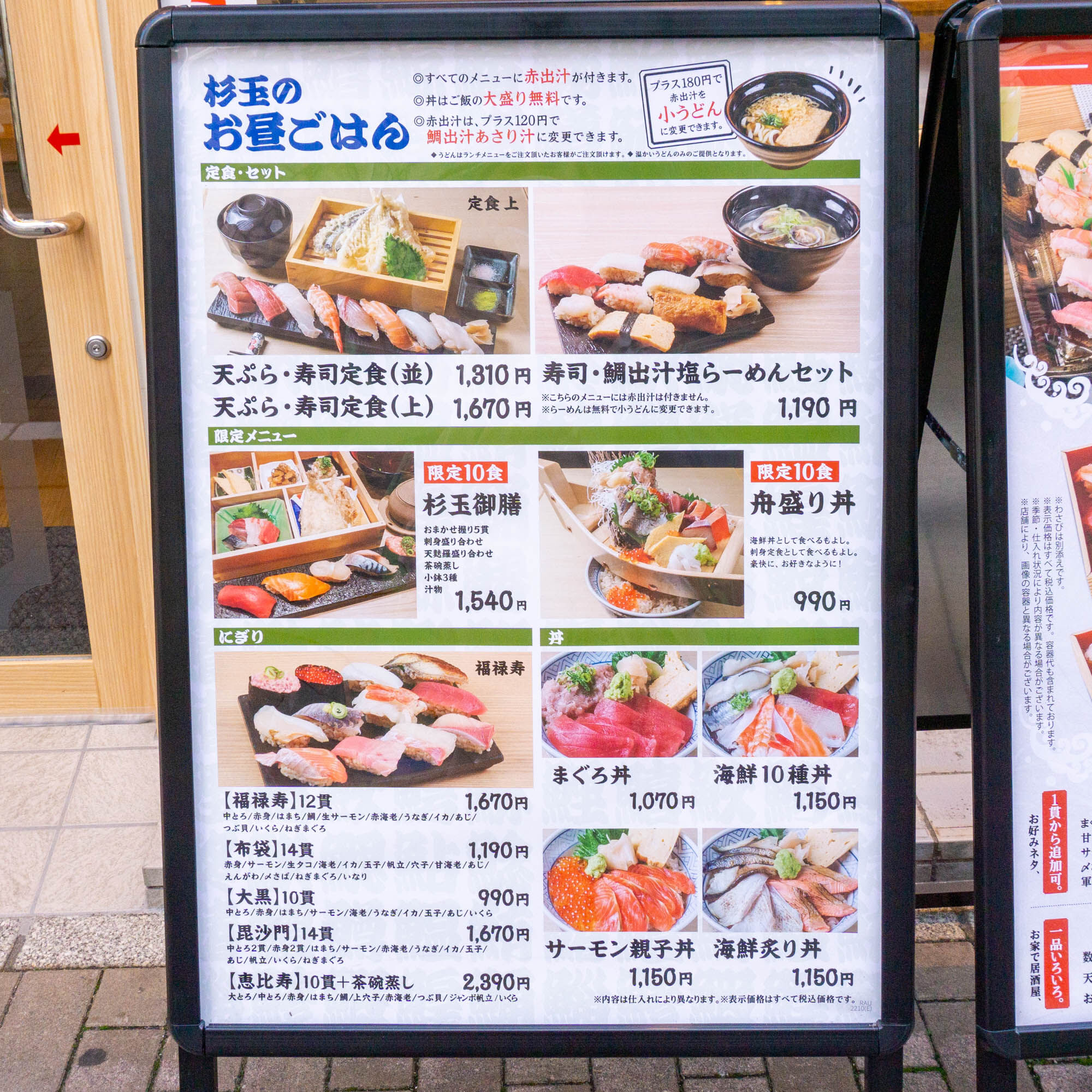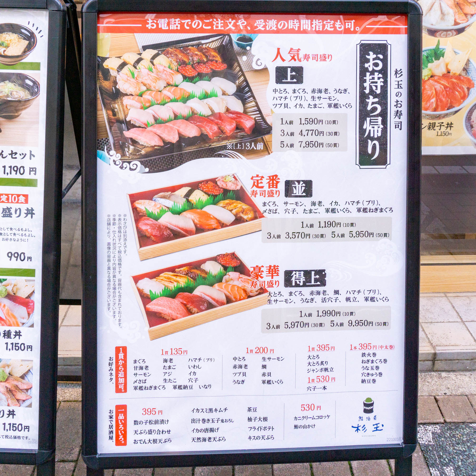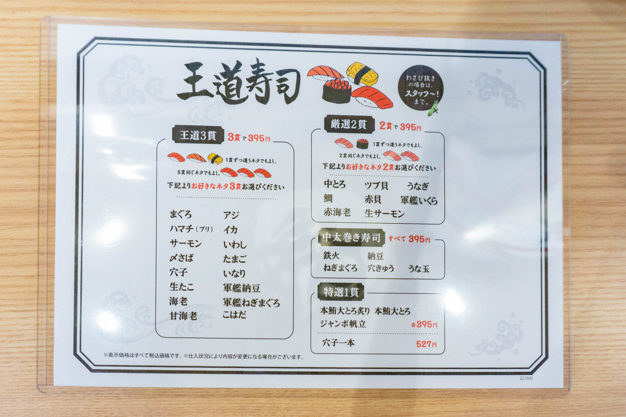 握り寿司のメニュー。