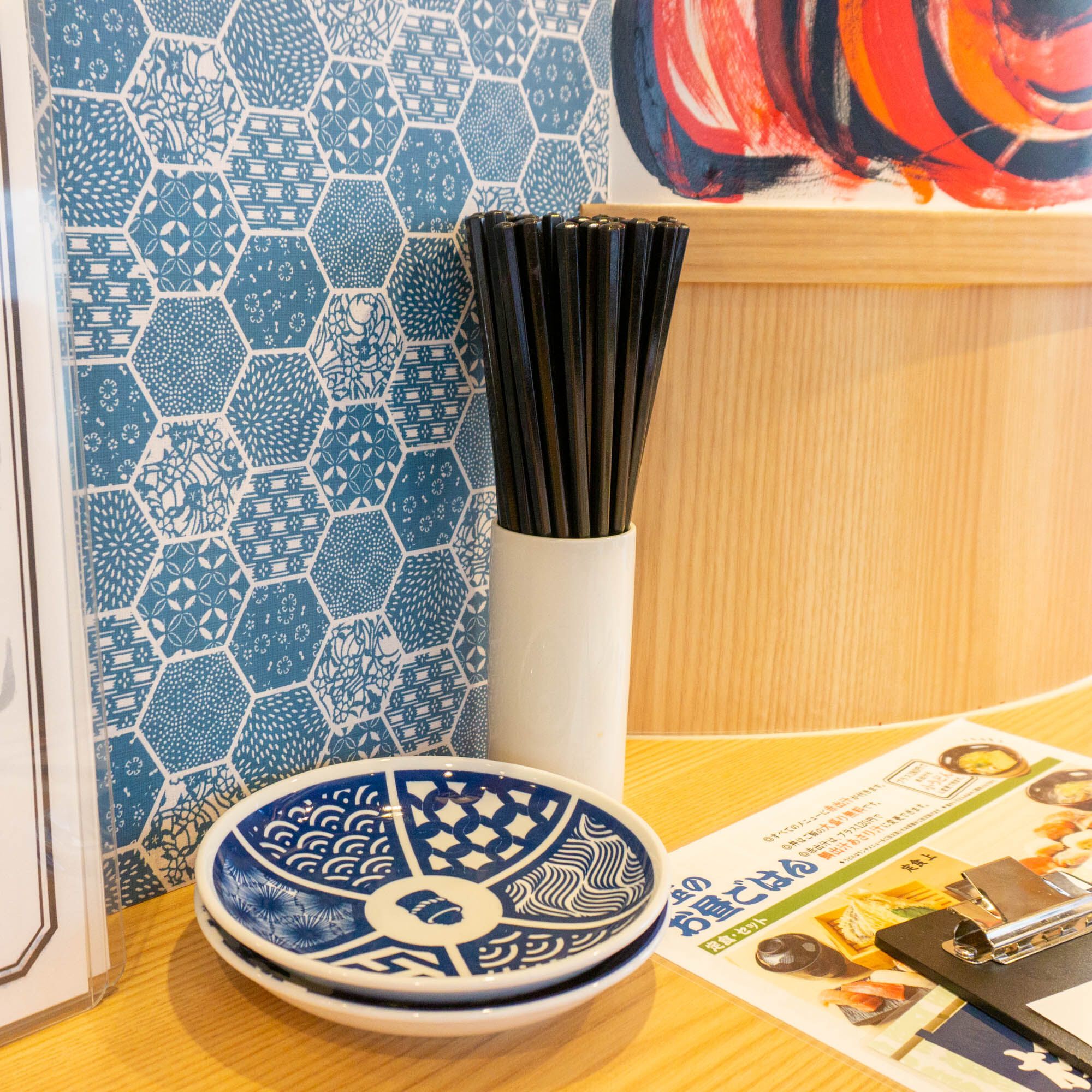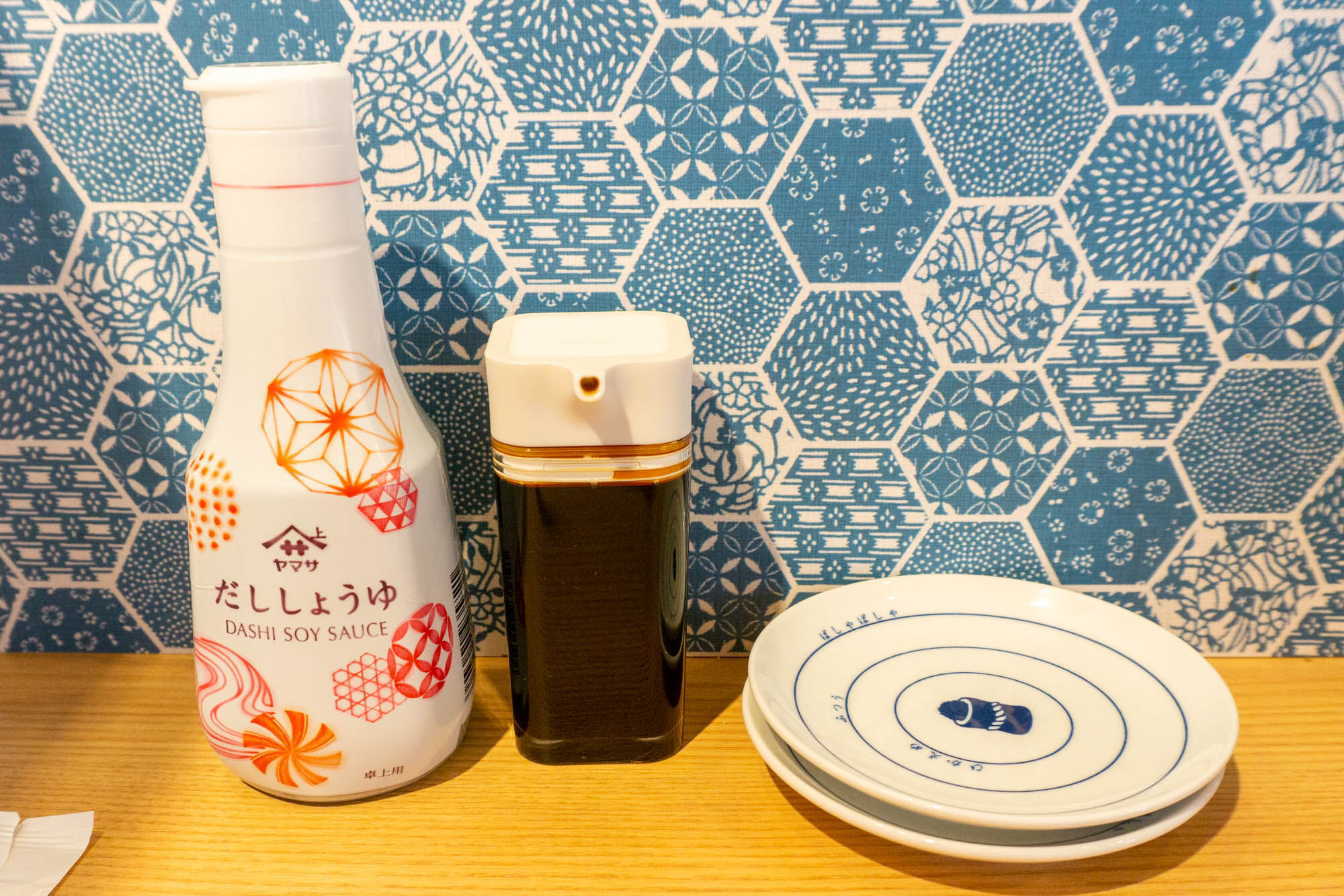 目に入るのが2種類の醤油と醤油皿。