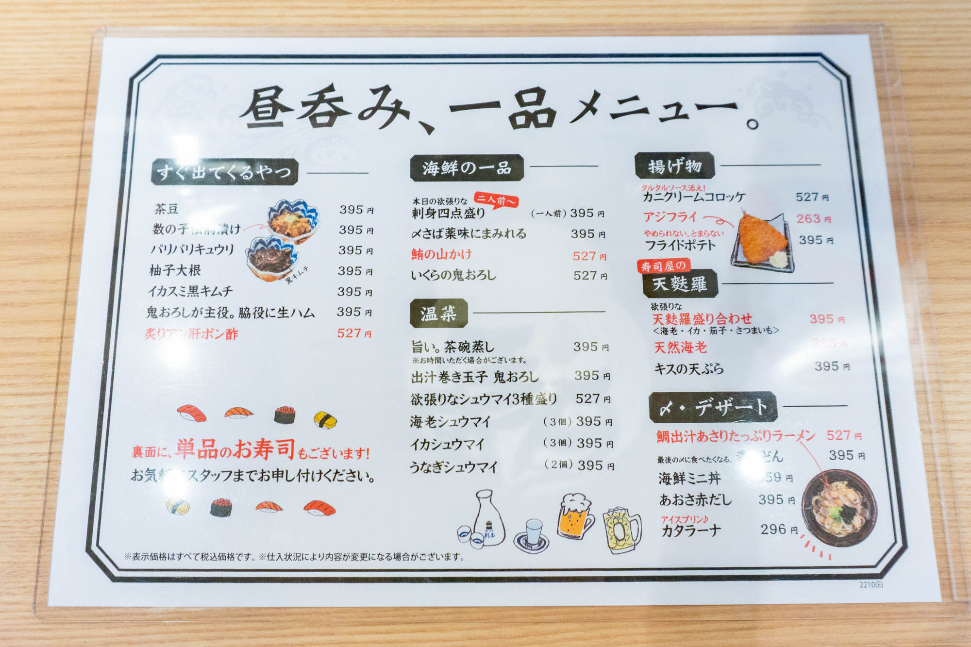 昼飲み用メニュー。