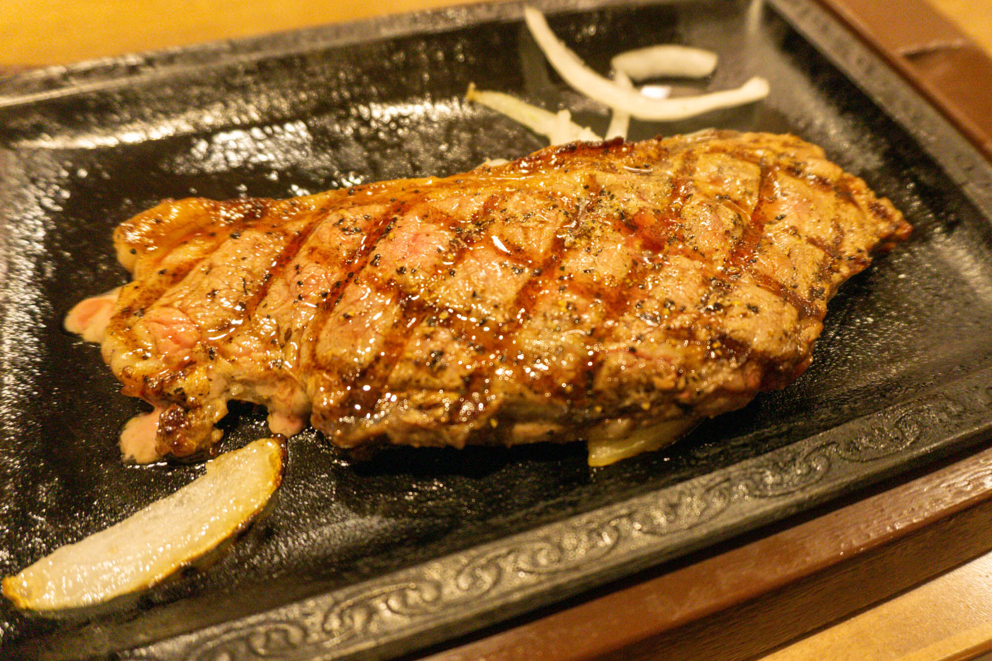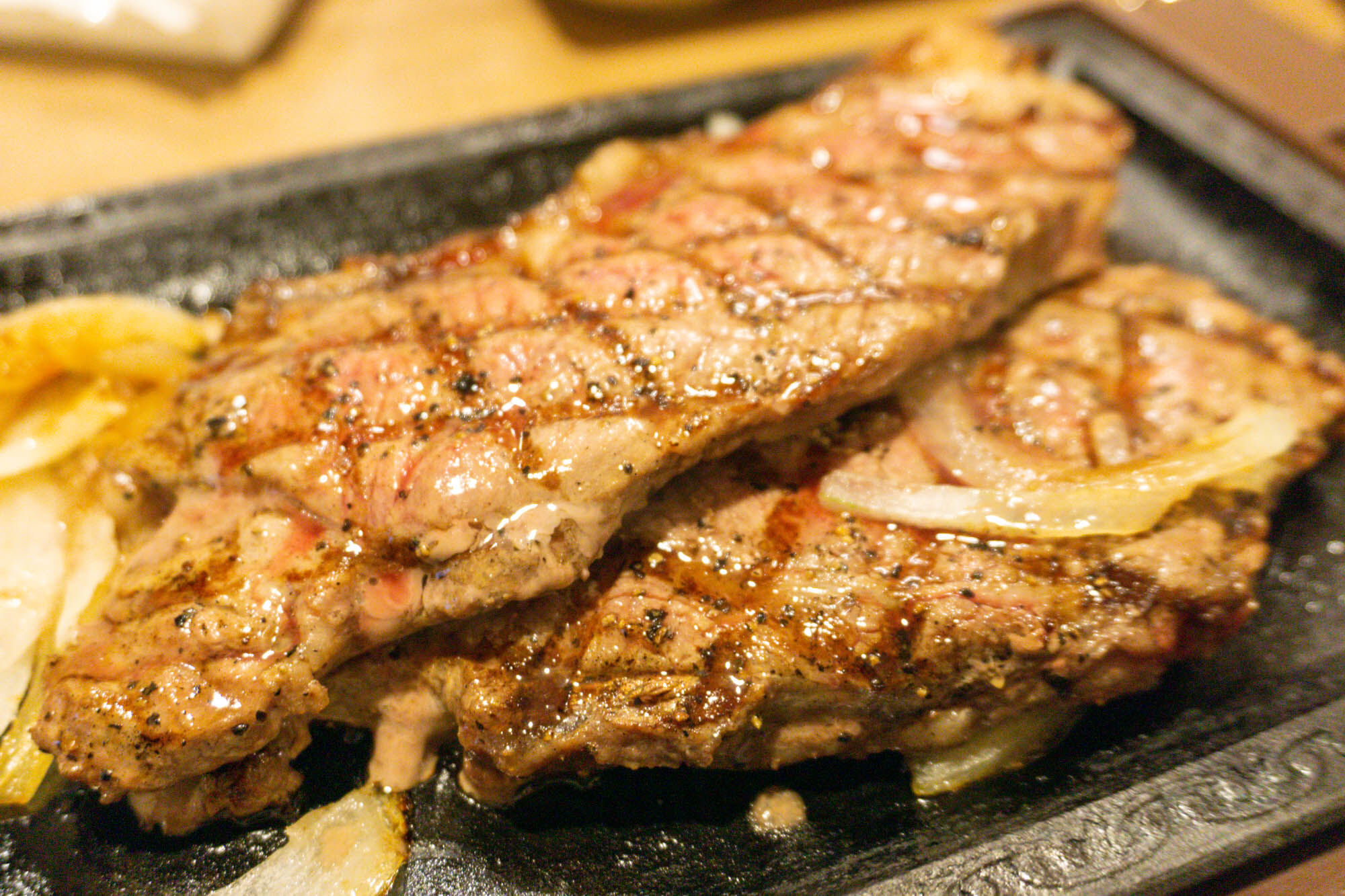 つぎに頼んだのは「みすじステーキ」。厚みがかなりあって、サーロインよりも分厚い!!