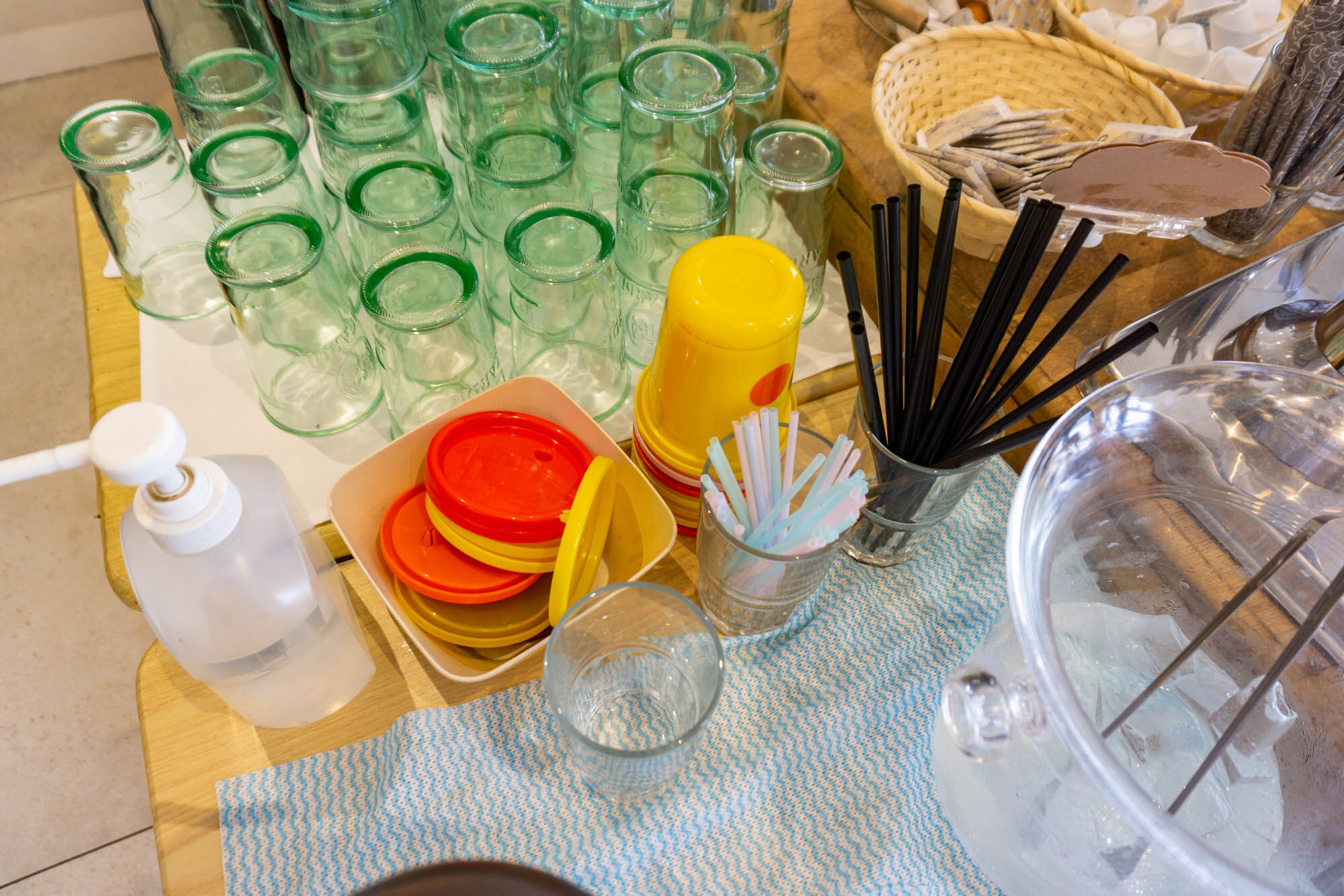 こちら側はアイスドリンクでジュース3種とコーヒー・紅茶・お茶。後ろ側にはホットドリンクも。