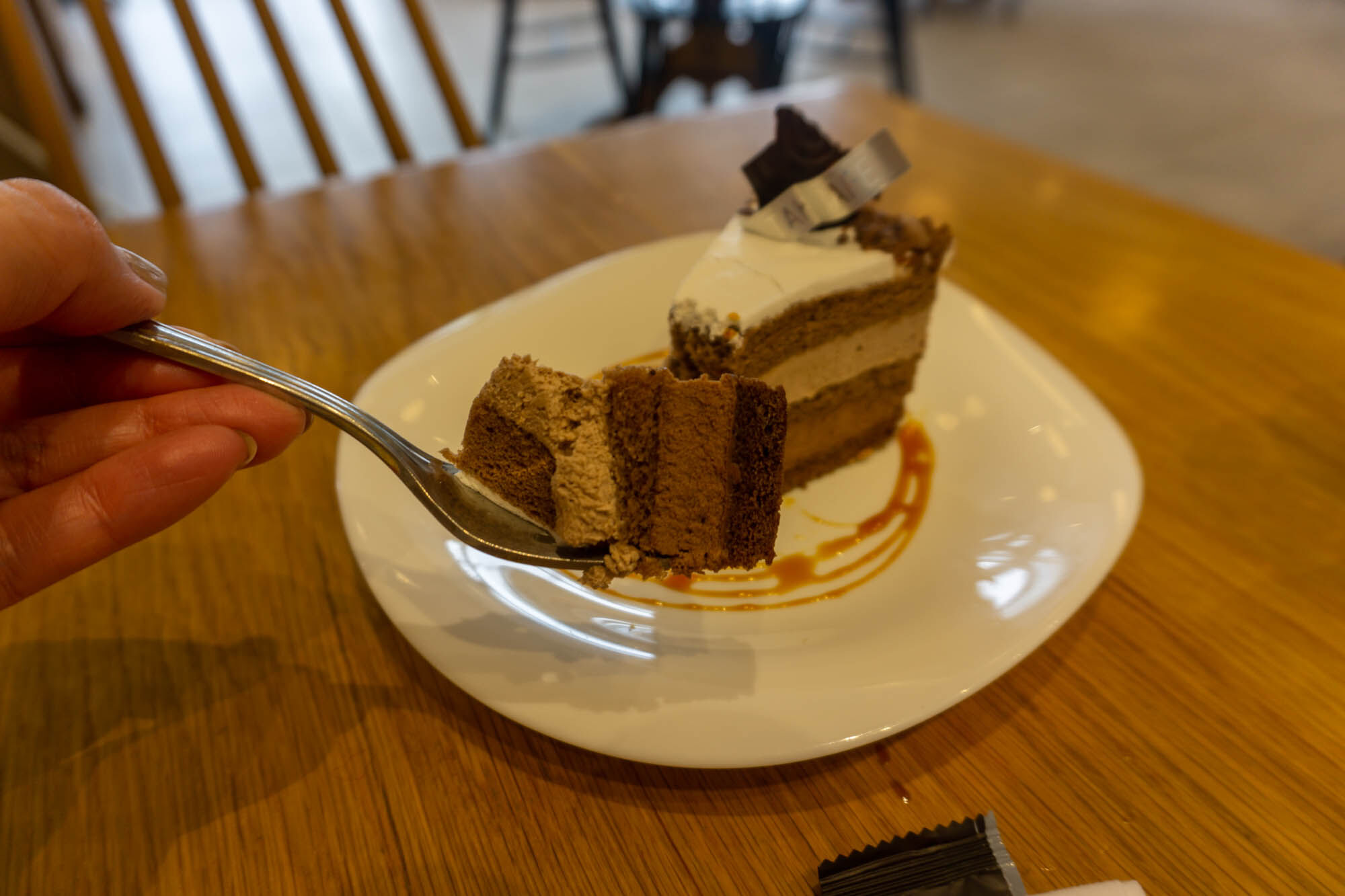 こちらはお酒が入っていない「お子さんでも食べやすいチョコレートケーキですよ〜」とのことなので安心して選べました。