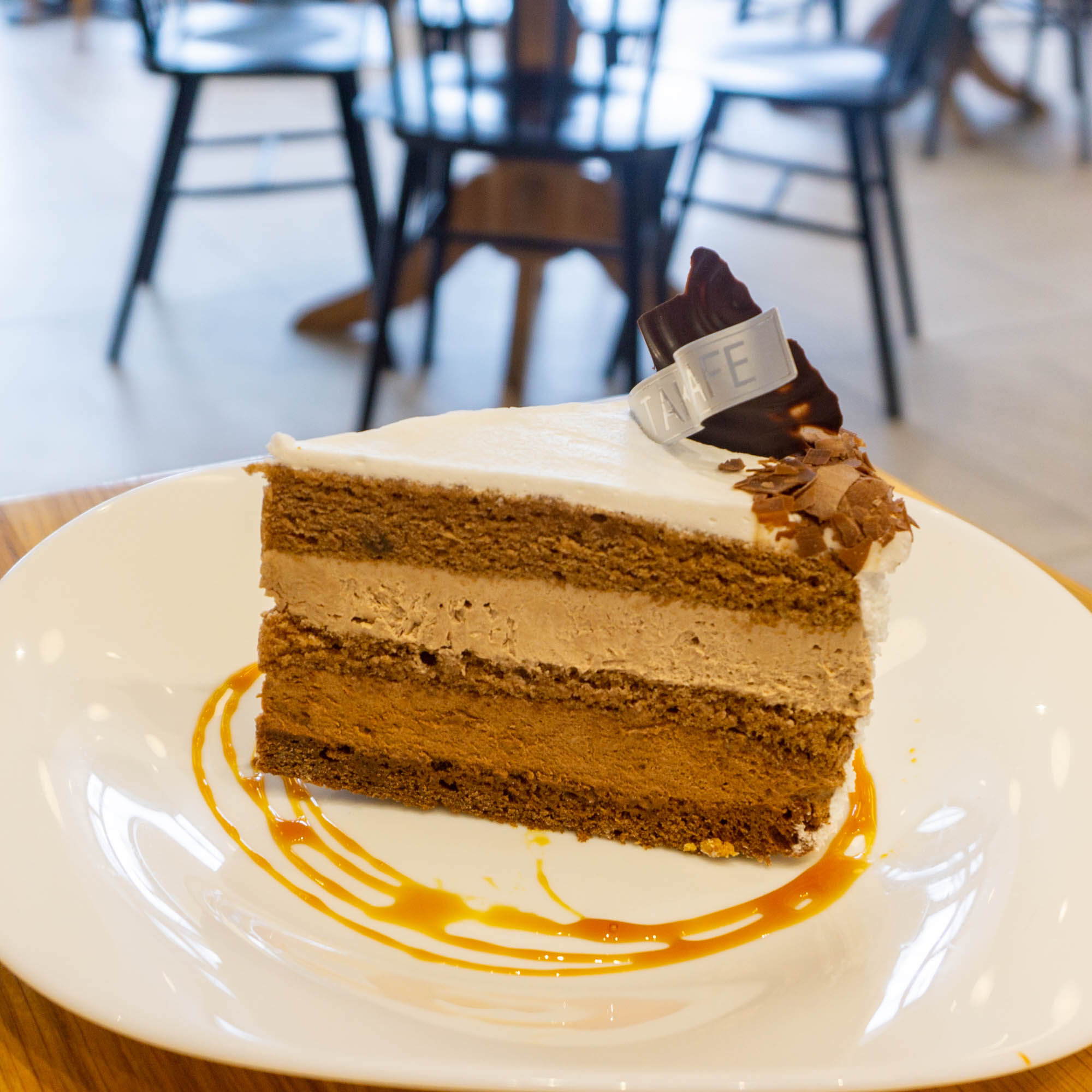 店員さんが全部のケーキを丁寧に説明してくれます。私はコーヒークリームとレーズンのケーキにいきたかったんですが子どもがこれ!と指定したショコラトルテになりました。