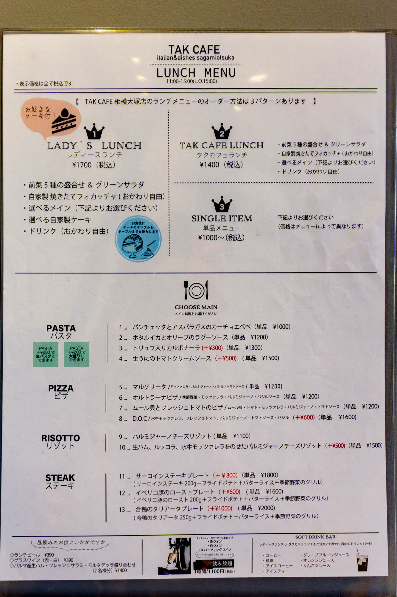 「TAK CAFE Italian dishes & cakes」の『レディースランチ(ケーキ付き)』(大和市桜森)【やまとぴグルメ】