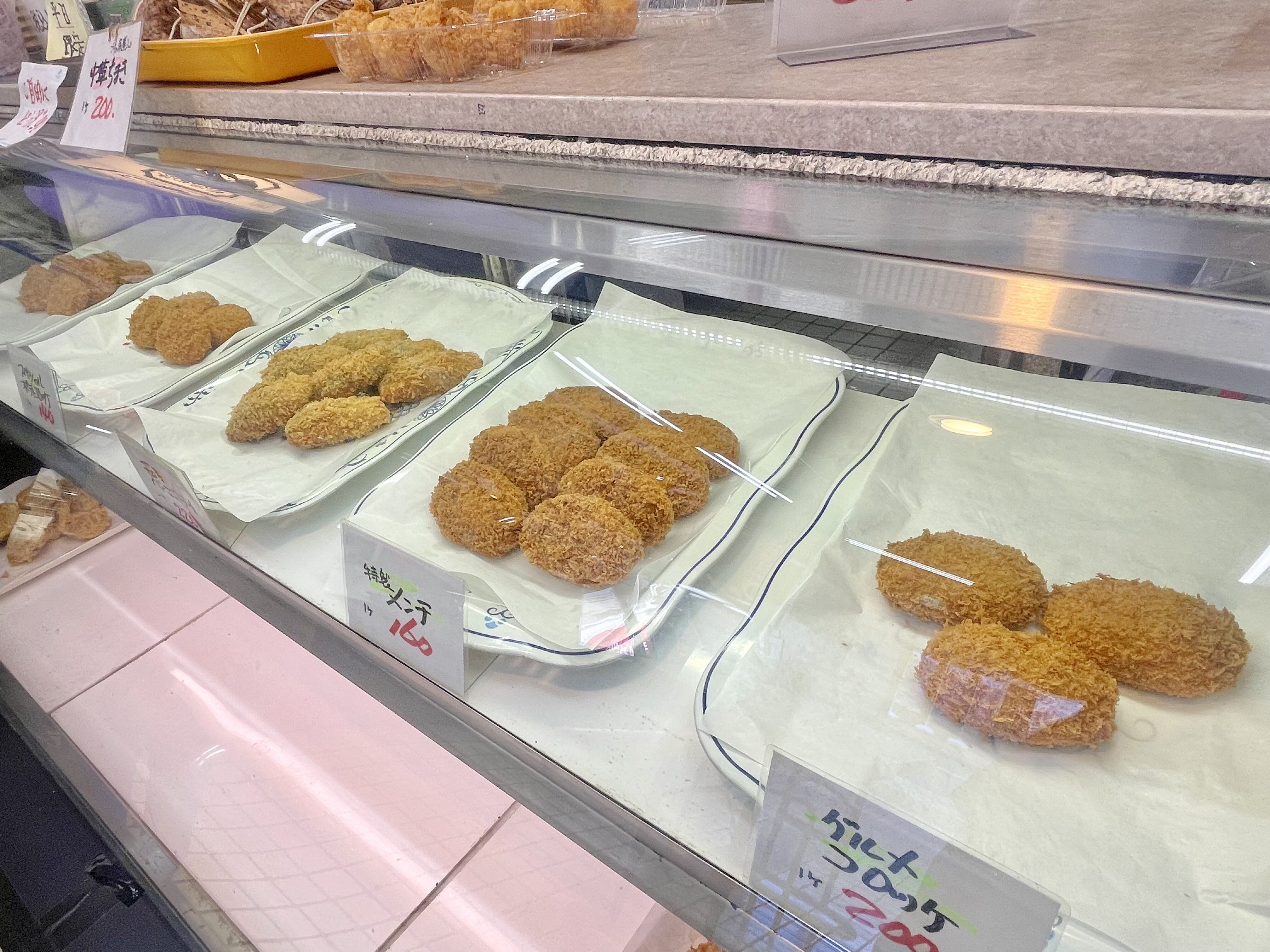 店舗奥、突き当たりのショーケースは揚げ物コーナー。