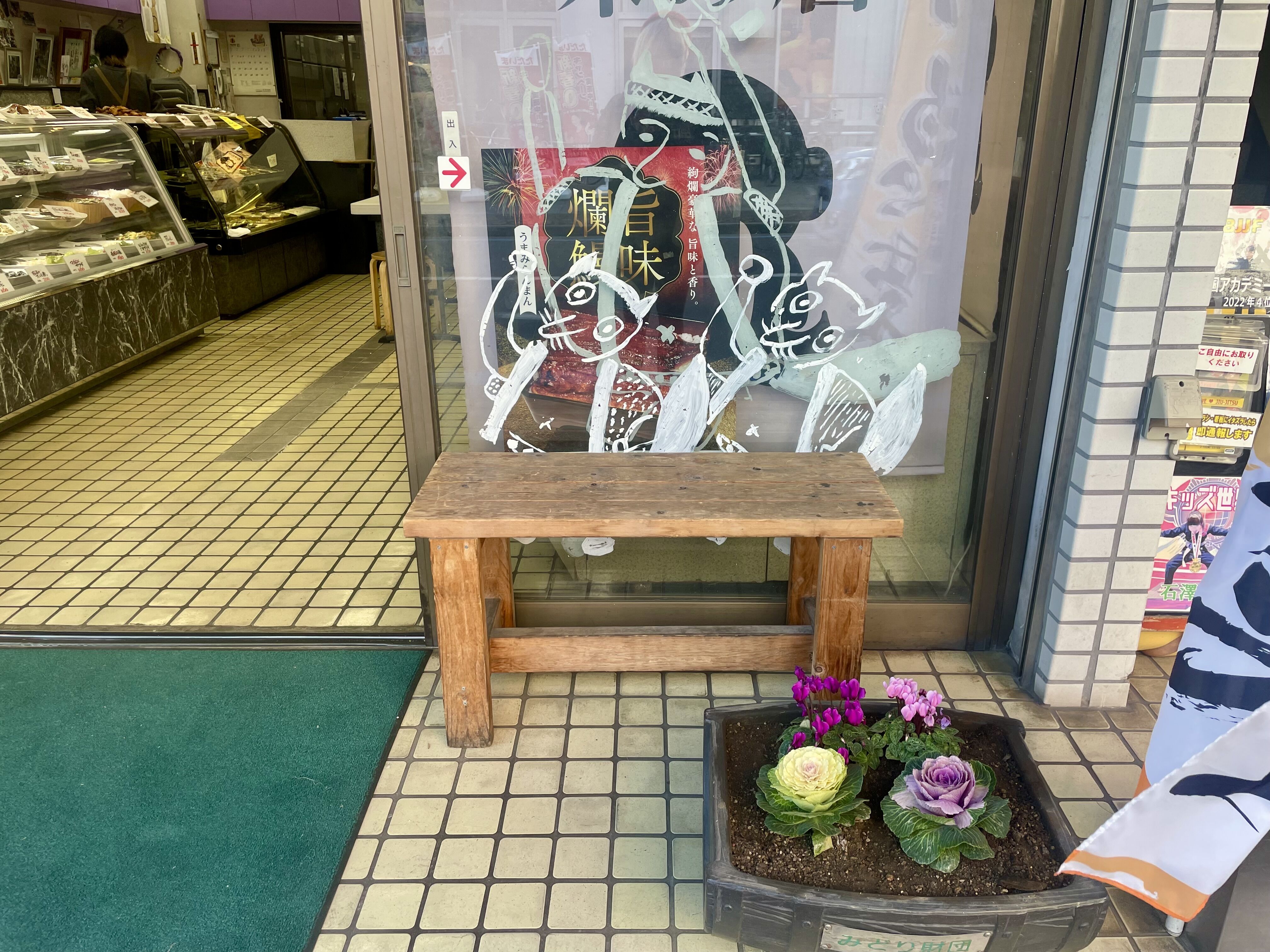 入り口横には木製ベンチがありました。