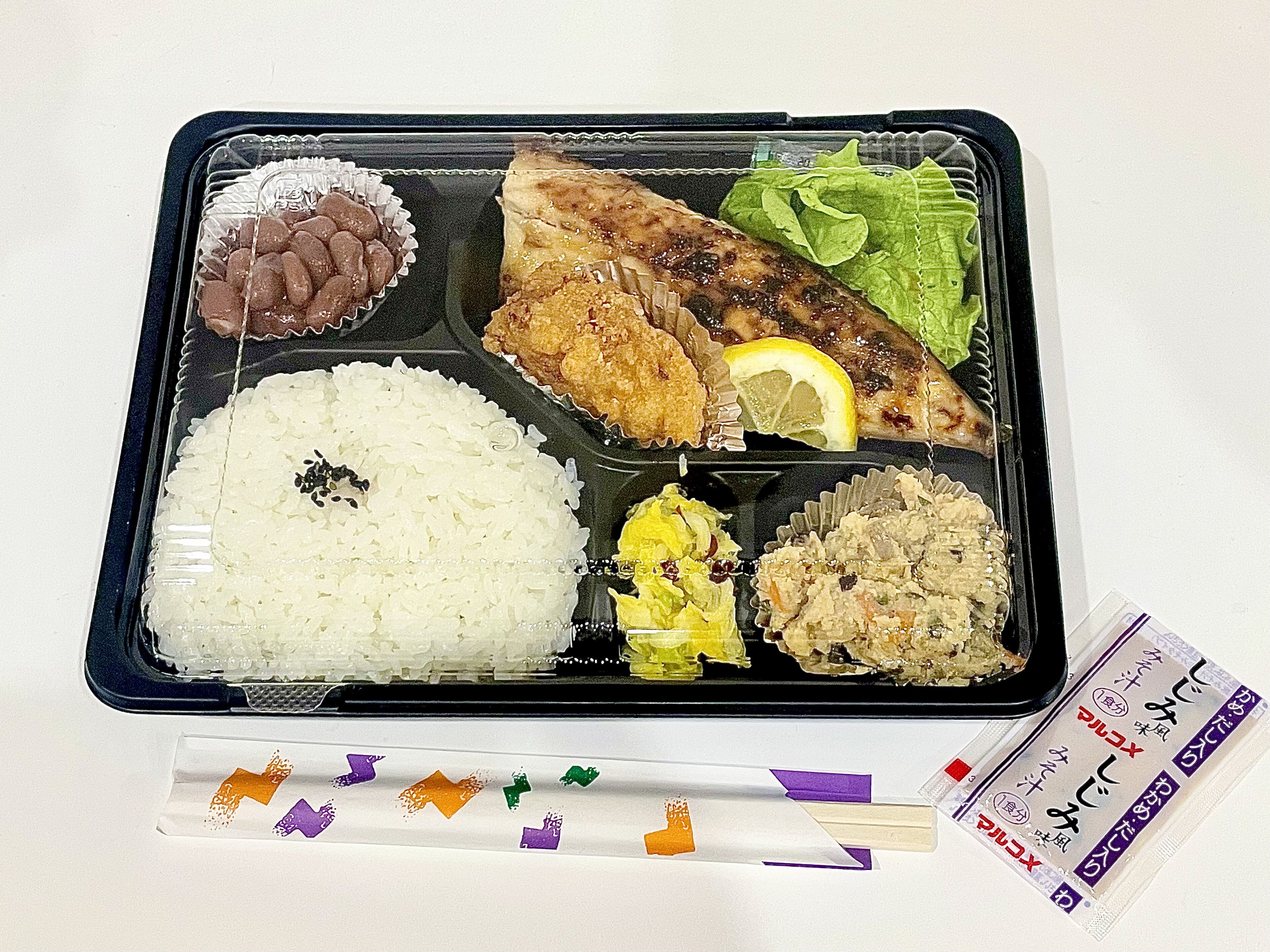 メインのおかず「サバの西京焼き」と、おまけで入れてくれた「唐揚げ」です。