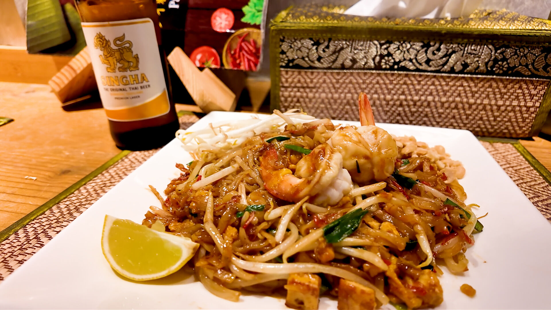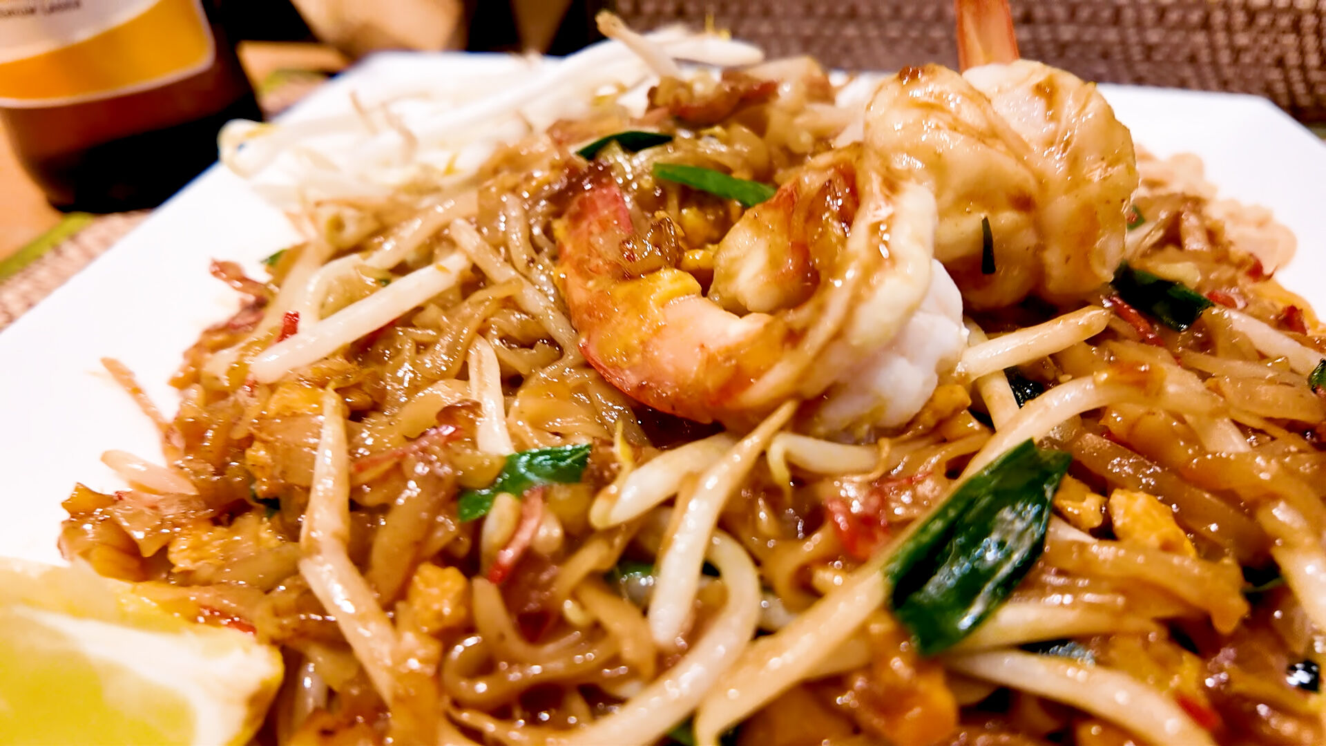 メインのパッタイは、もちもちの麺に甘酸っぱいソースが絡んで絶品!