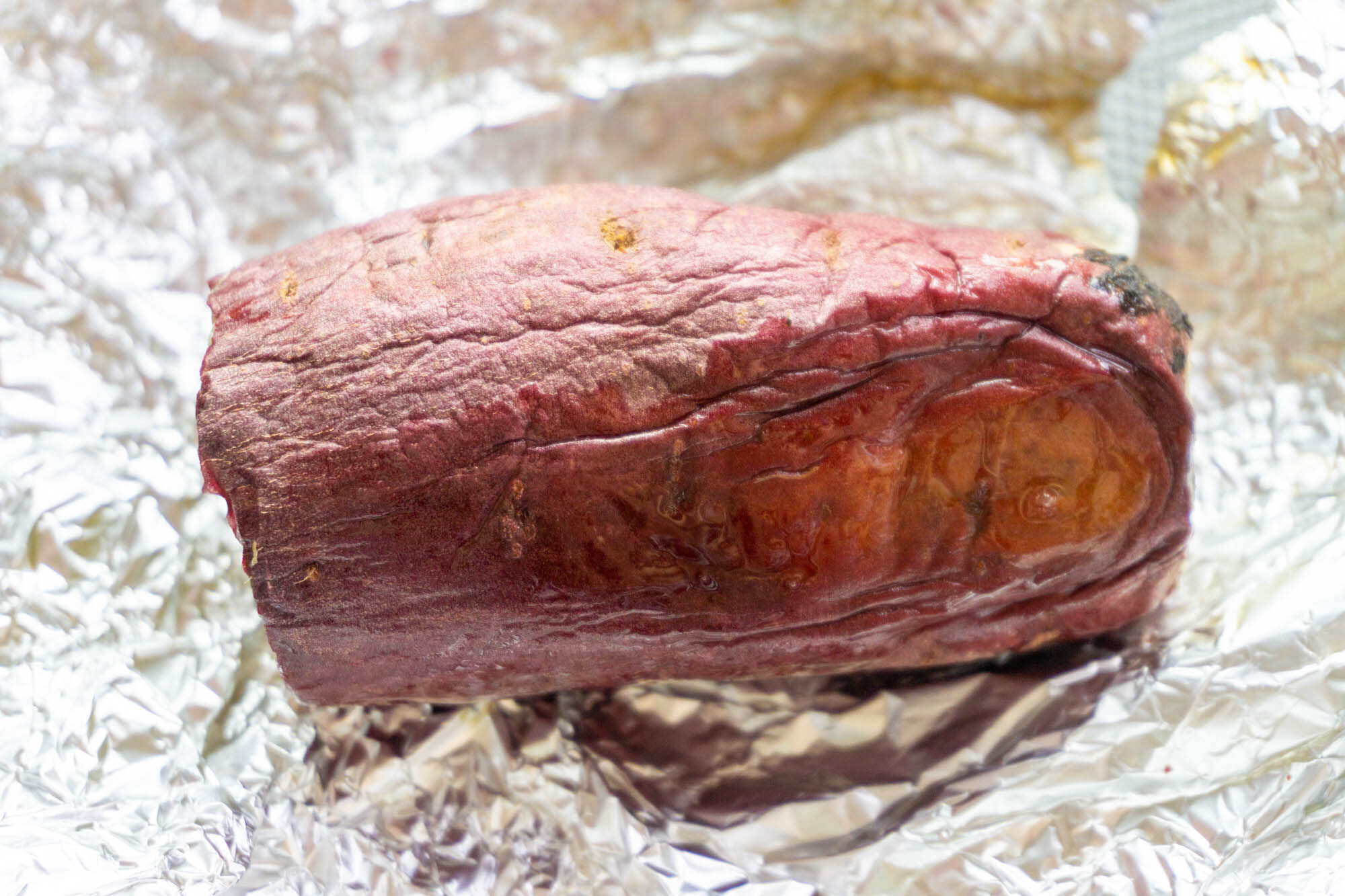 冷やし焼き芋も開封。蜜がアルミホイルにべったりついています。コレは期待!