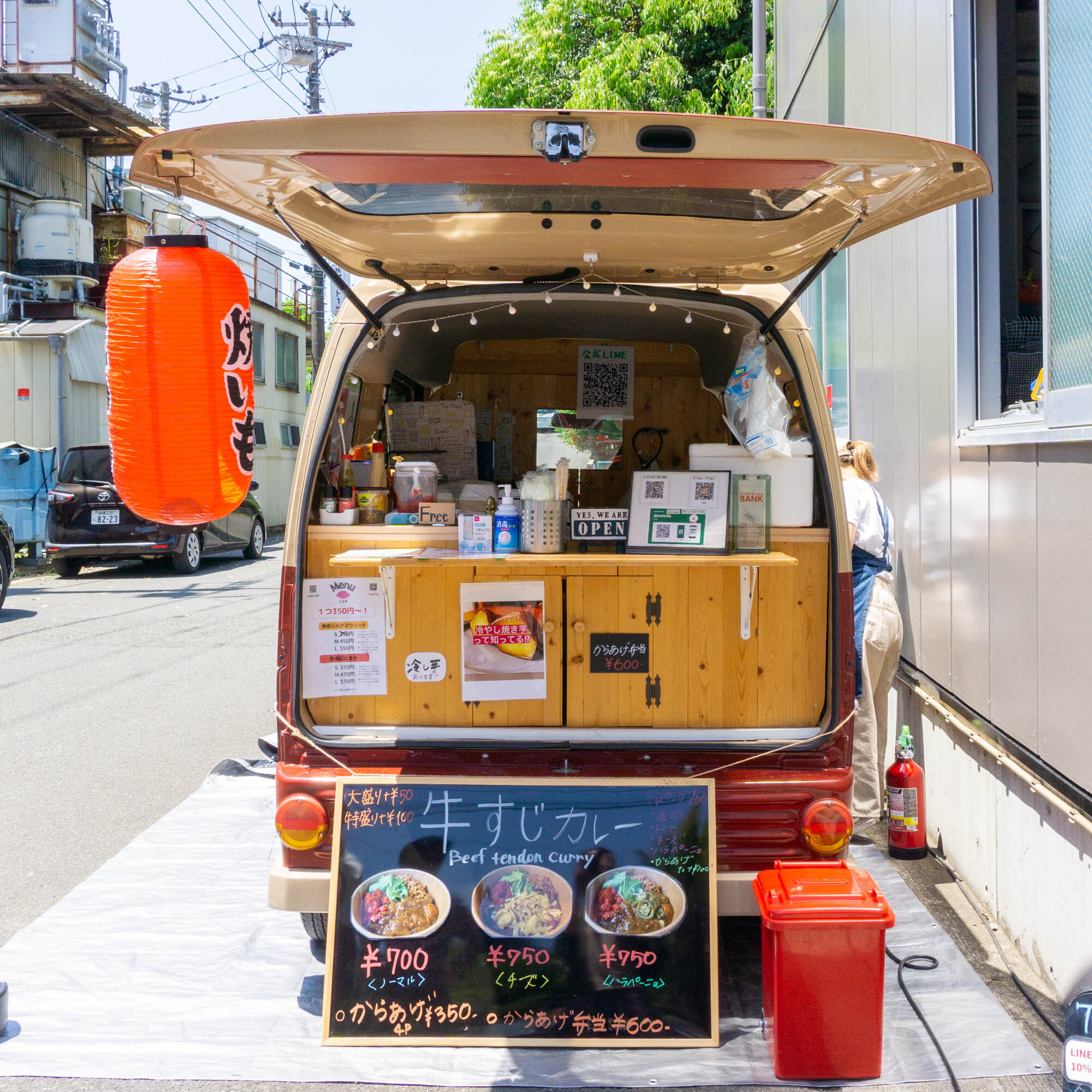 キッチンカーの注文口付近には「焼き芋」の提灯が。かなり目立ちます!